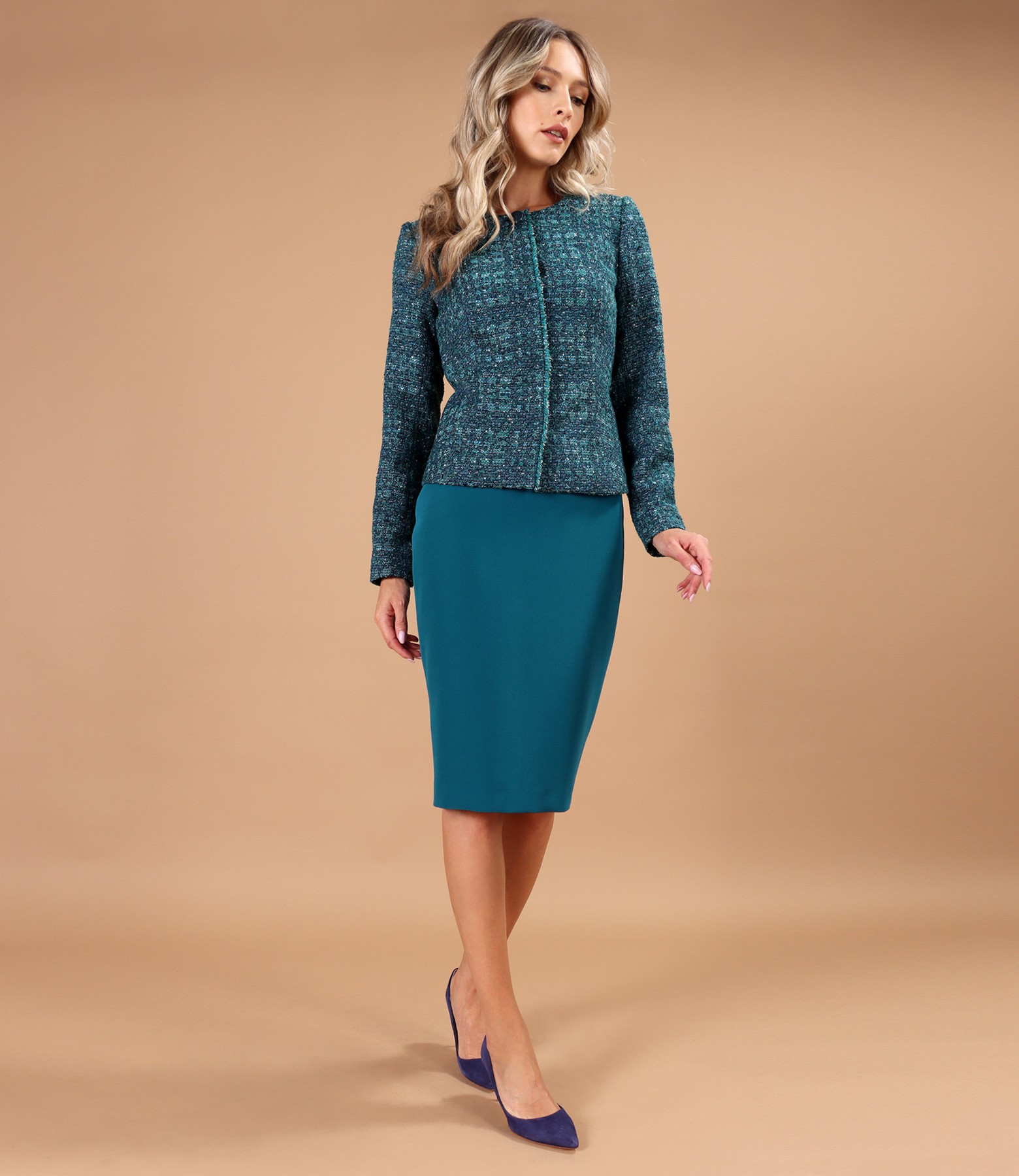 Sacou elegant din bucle cu lana si fir de lurex (Bleumarin), marimea