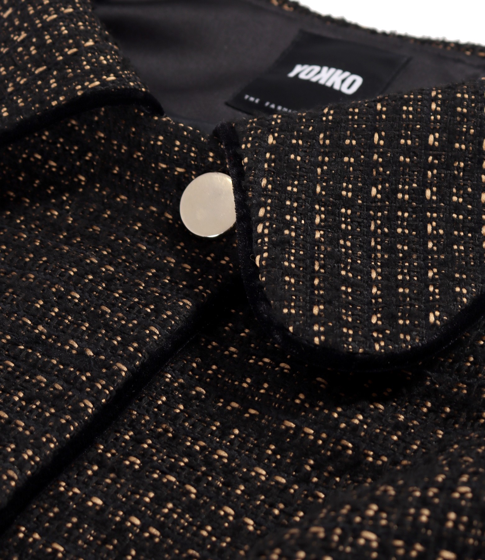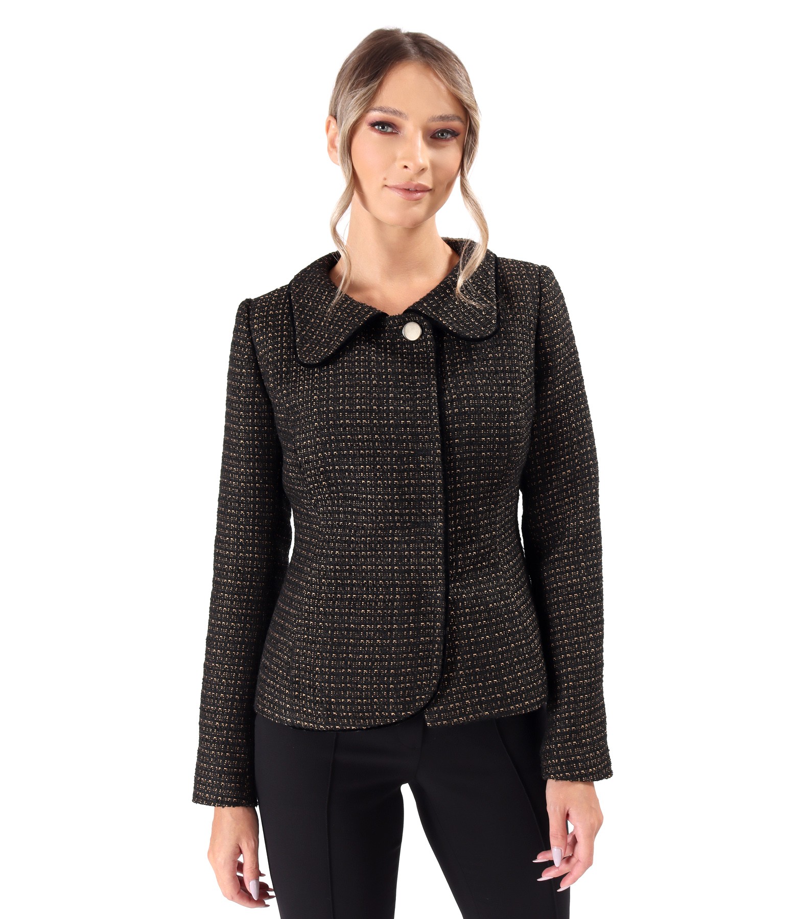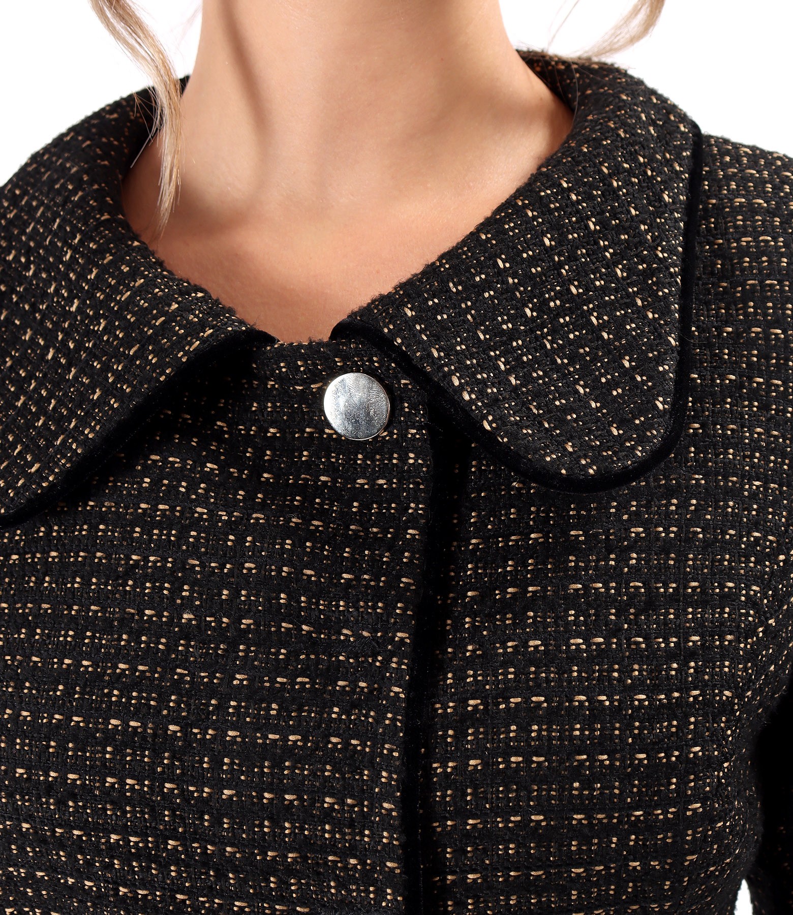 Sacou elegant din bucle, captusit, cu guler rotund si nasture la decolteu. Se inchide cu 4 capse si un nasture pe mijloc fata.