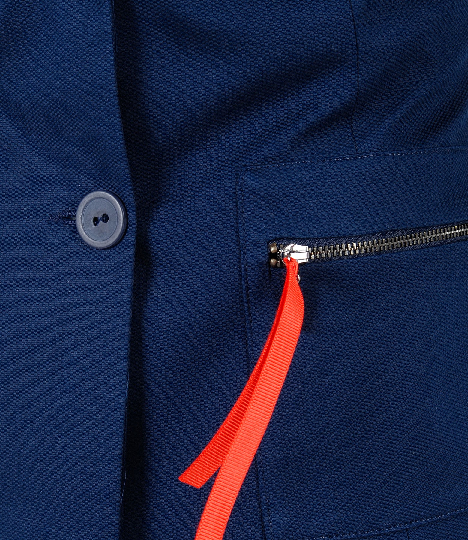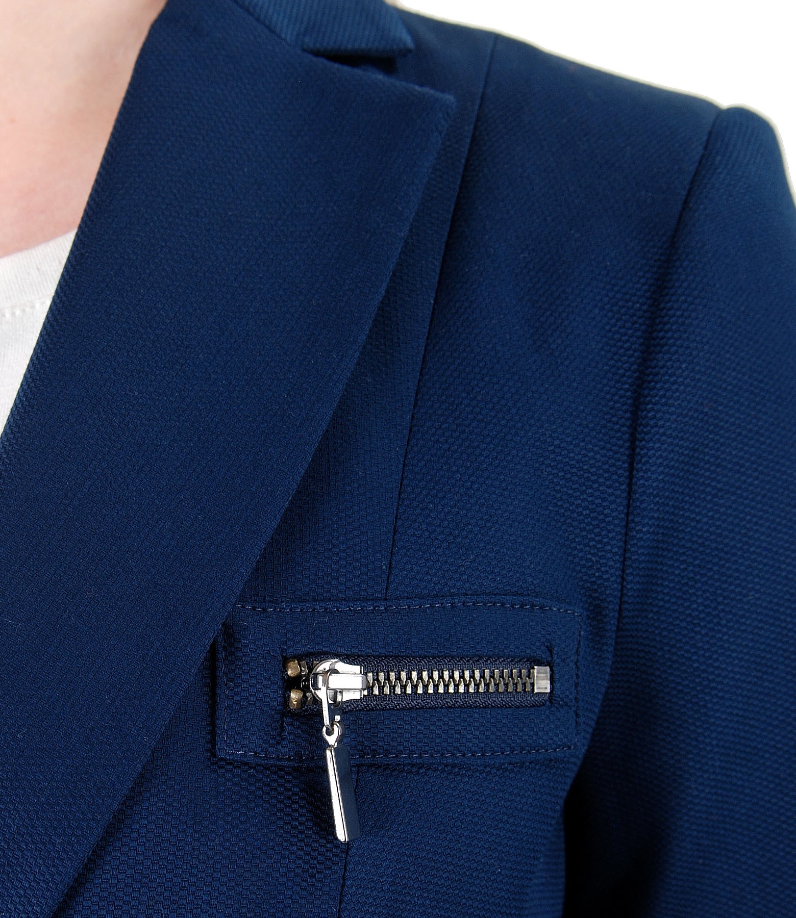 Sacou elegant din bumbac texturat, captusit cu viscoza, cu buzunare cu fermoare aplicate pe fata si banda de rips la buzunar. Se inchide cu 2 nasturi pe fata.