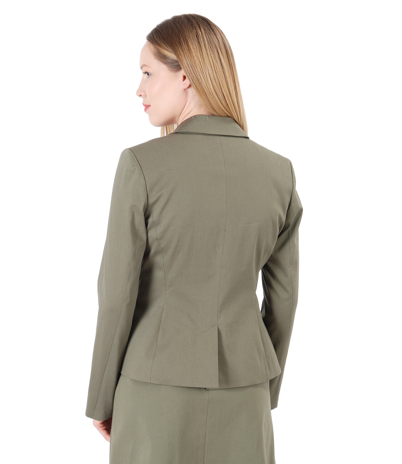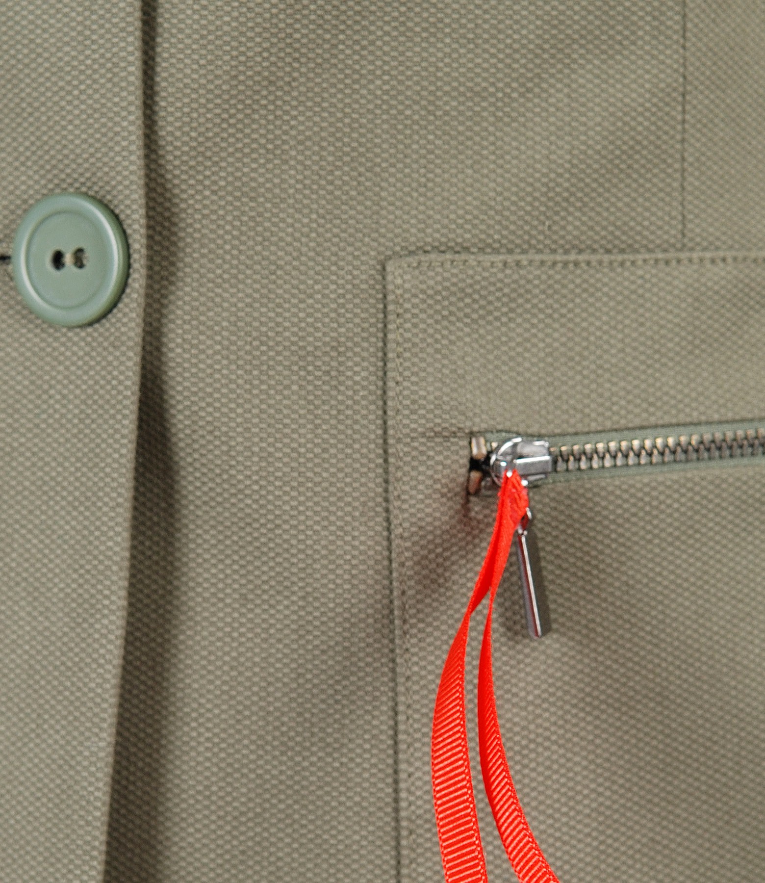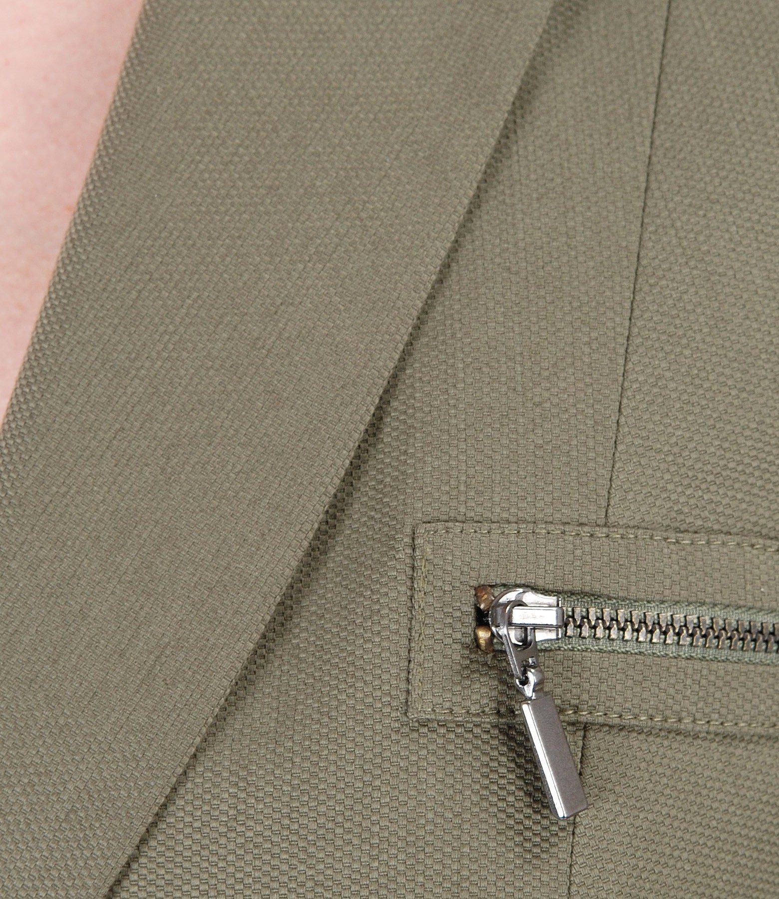 Sacou elegant din bumbac texturat, captusit cu viscoza, cu buzunare cu fermoare aplicate pe fata si banda de rips la buzunar. Se inchide cu 2 nasturi pe fata.