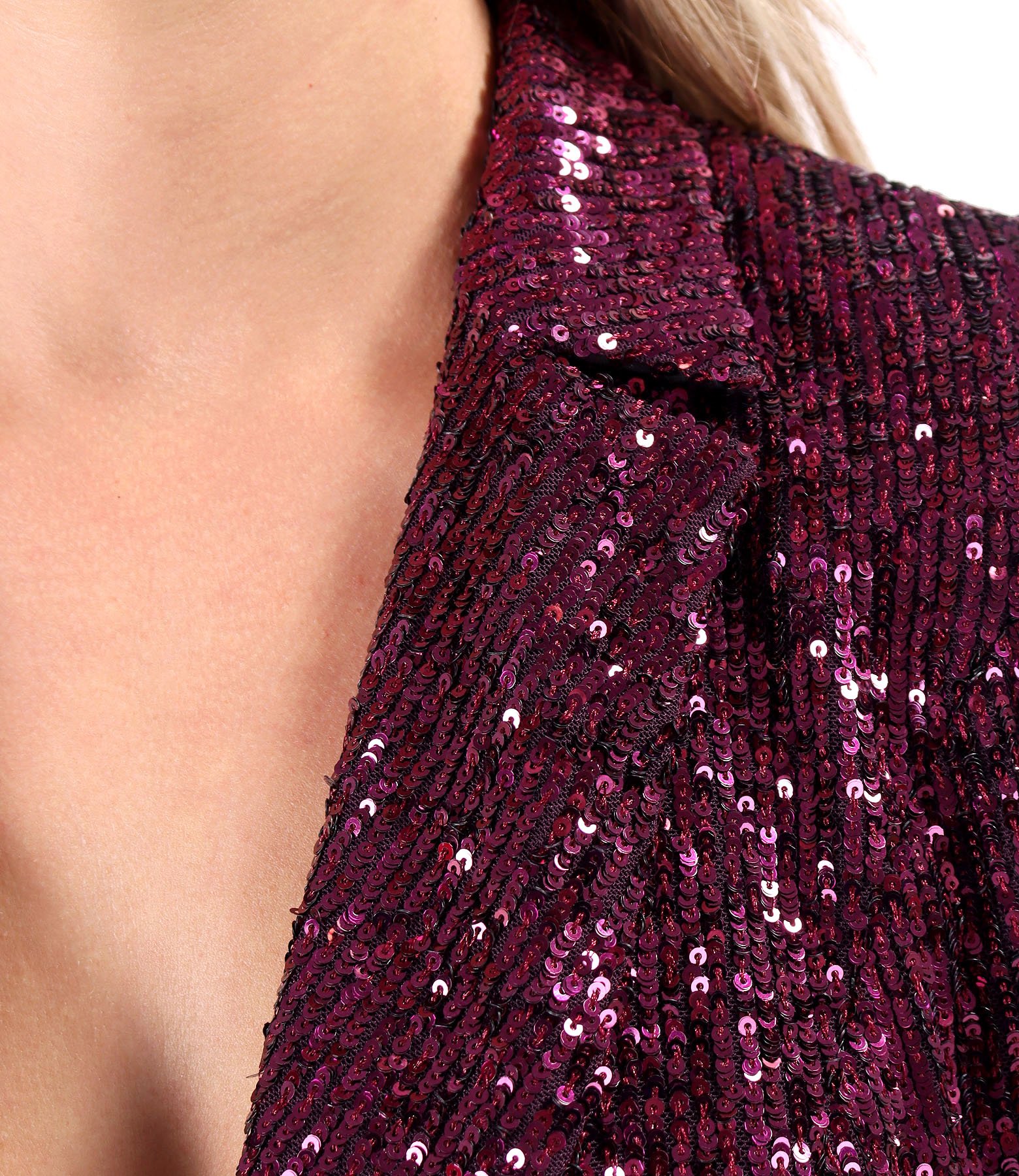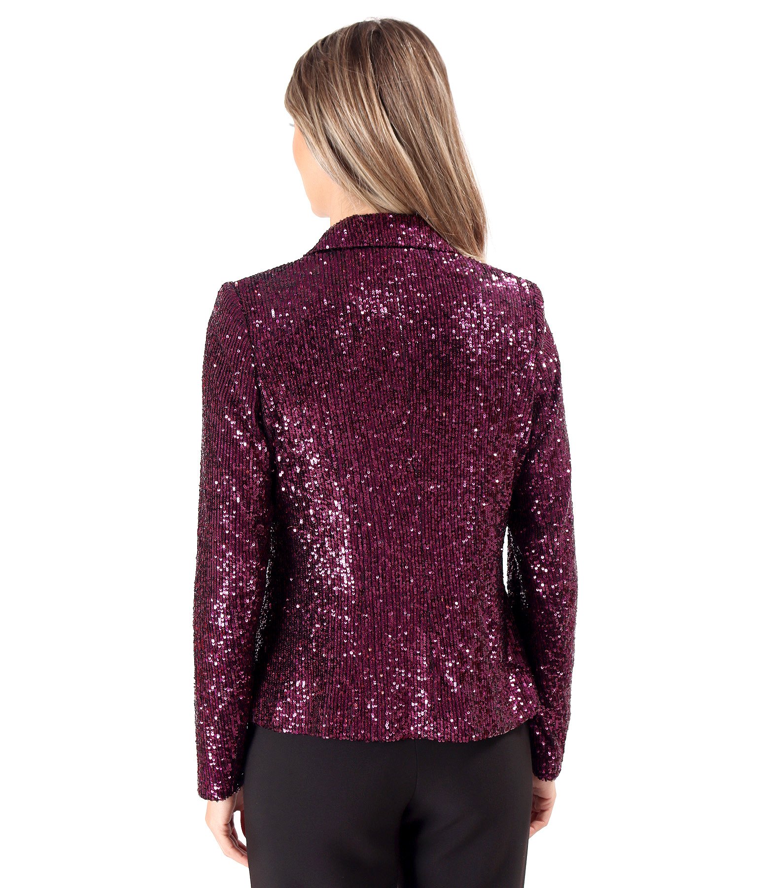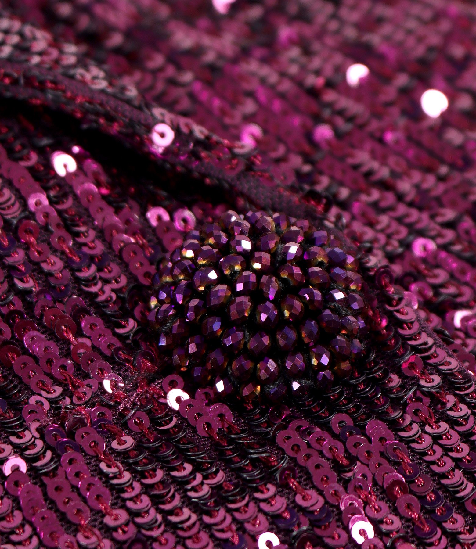 Sacou elegant din paiete metalizate, captusit cu saten, cu decolteu adanc. Se inchide cu un nasture pe fata.
