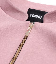 Sacou elegant din scuba cu viscoza, cu maneci 3/4 cu mansete ample tip peplum, captusit, cu guler gen tunica si buzunare laterale. Se inchide cu fermoar pe mijloc fata.