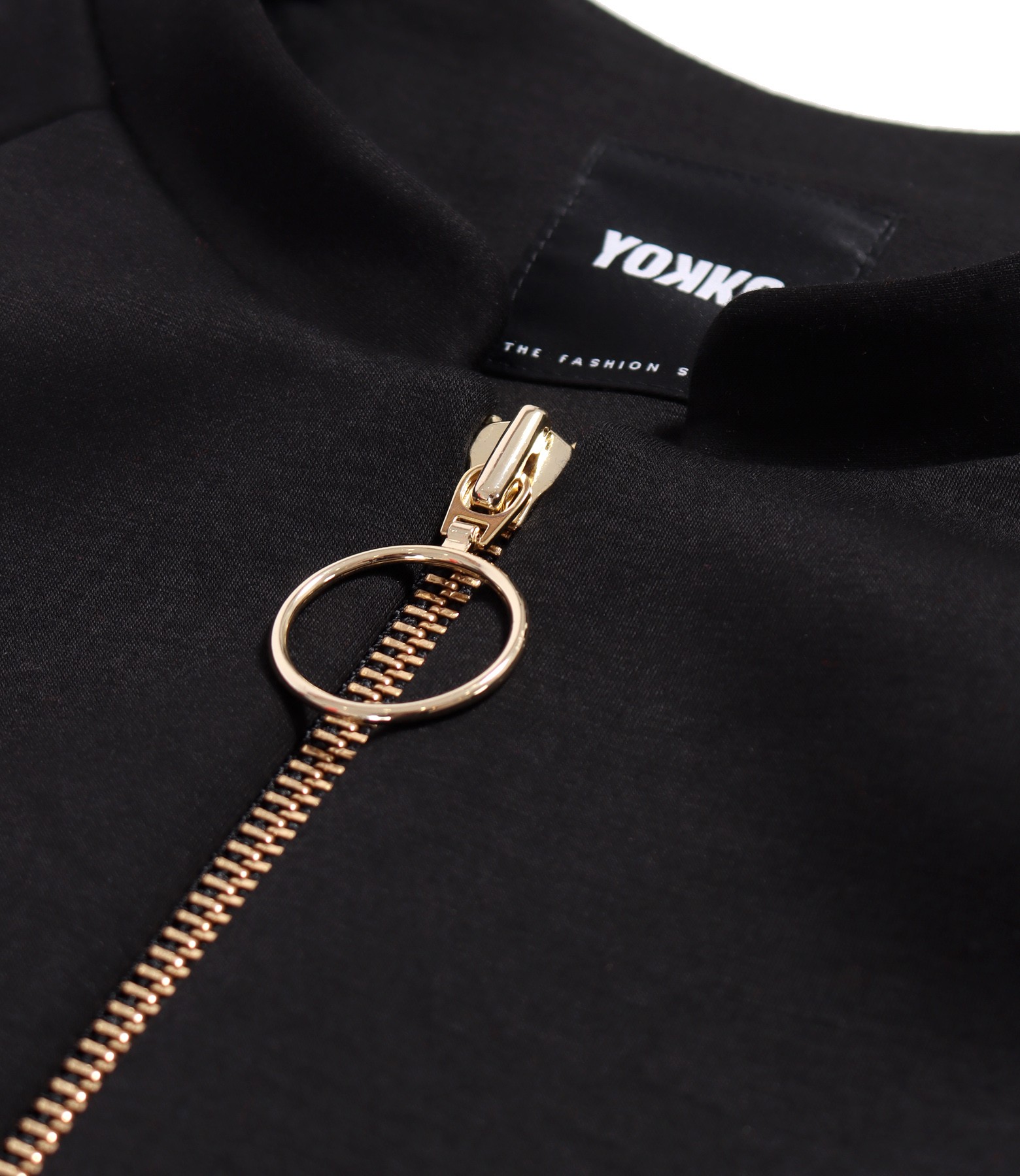 Sacou elegant din scuba cu viscoza, cu maneci 3/4 cu mansete ample tip peplum, captusit, cu guler gen tunica si buzunare laterale. Se inchide cu fermoar pe mijloc fata.