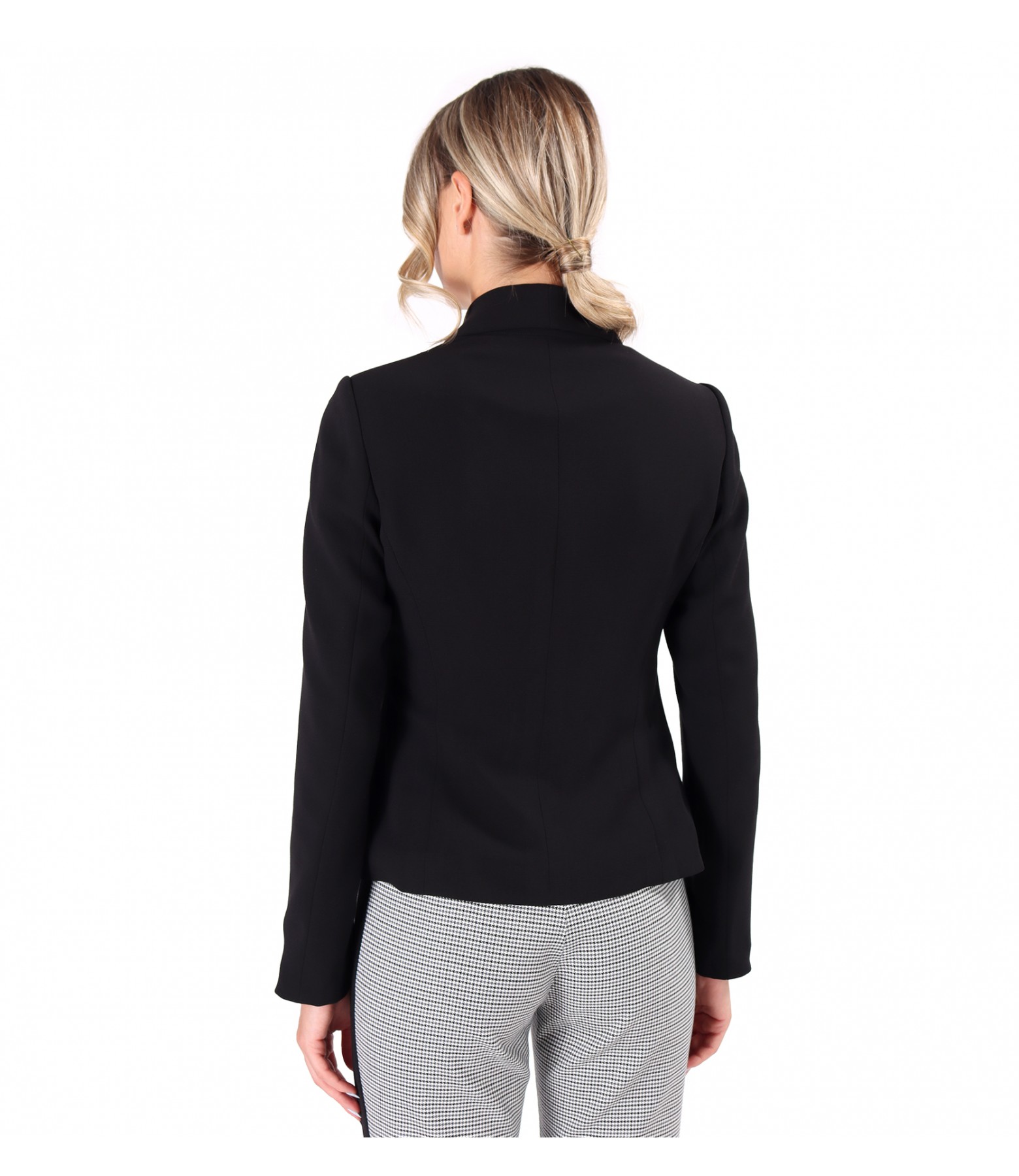 Sacou elegant din stofa elastica cu viscoza cu inima metalica rosie in talie (Negru), marimea
