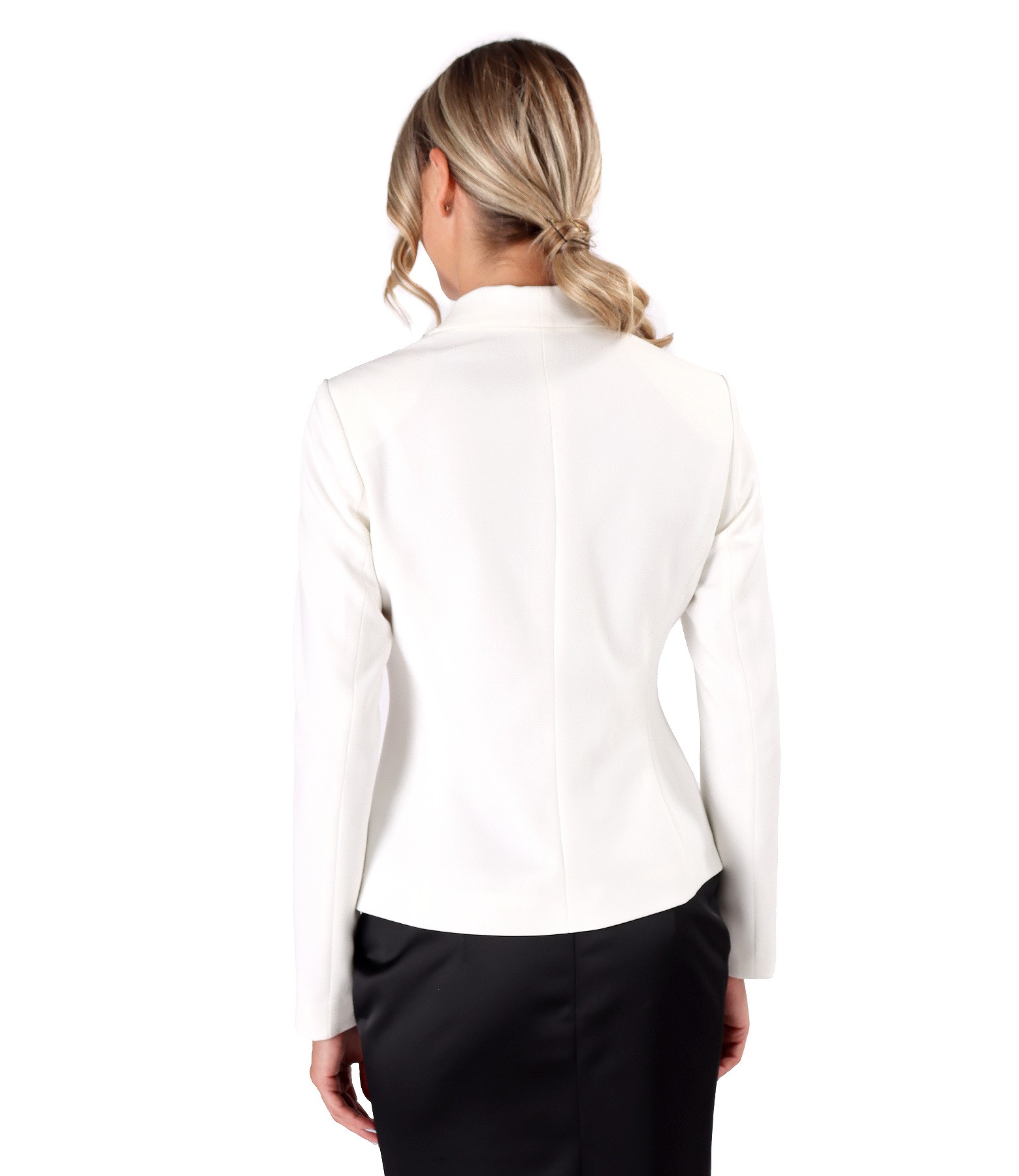 Sacou elegant din stofa elastica cu viscoza cu inima metalica rosie in talie (Alb-Ecru), marimea