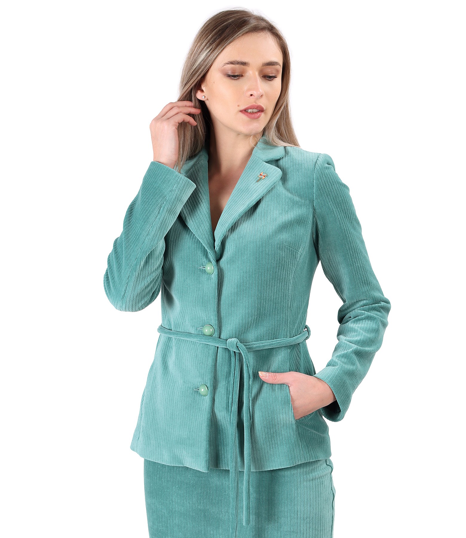 Sacou jacheta din catifea raiata cu cordon (Verde), marimea