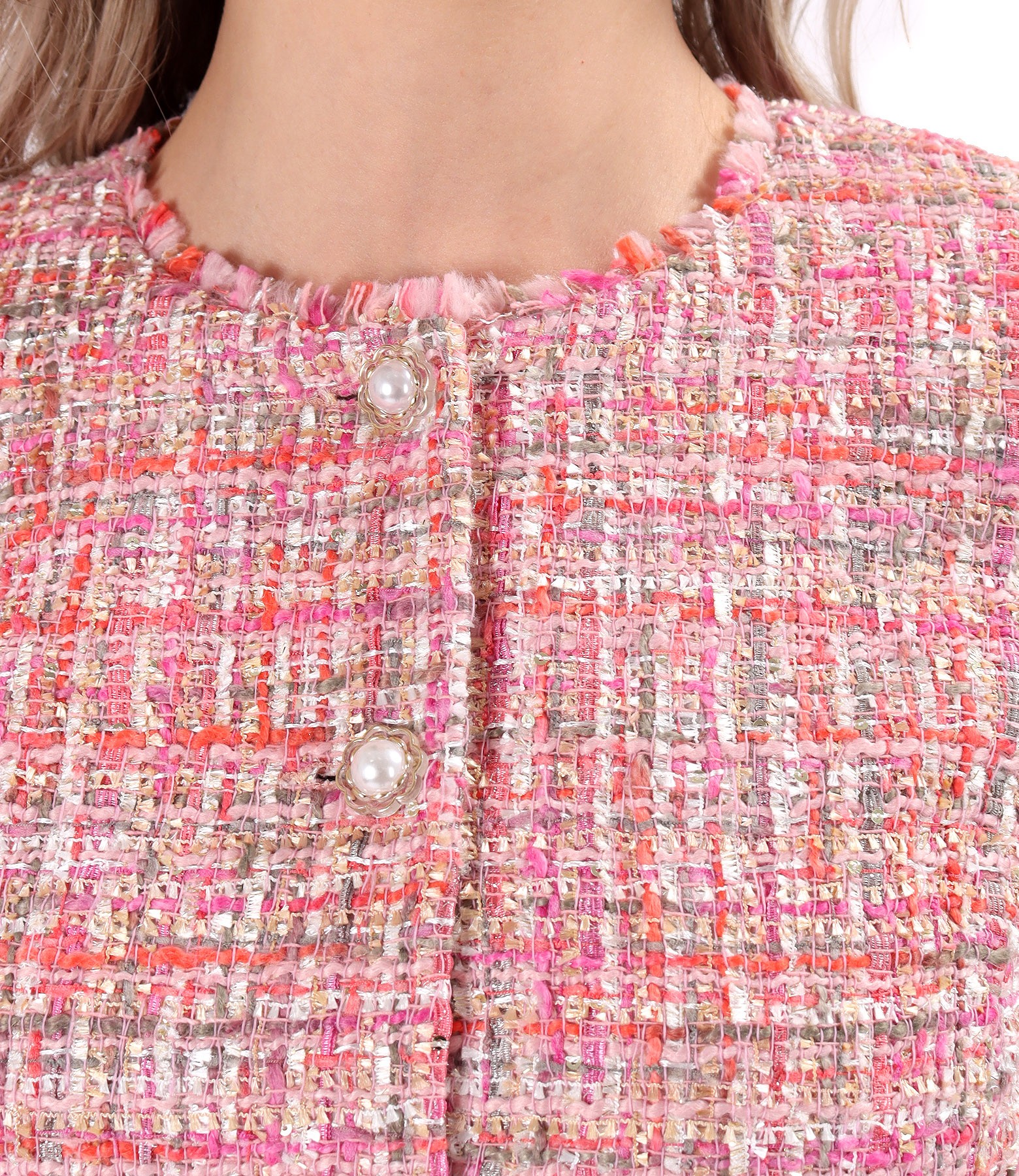 Sacou lung din bucle multicolor cu fir metalic (Roz), marimea