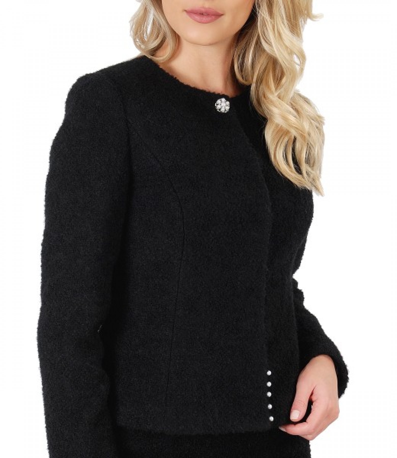 Sacou office din bucle cu lana si cu pasmanterie (Negru), marimea
