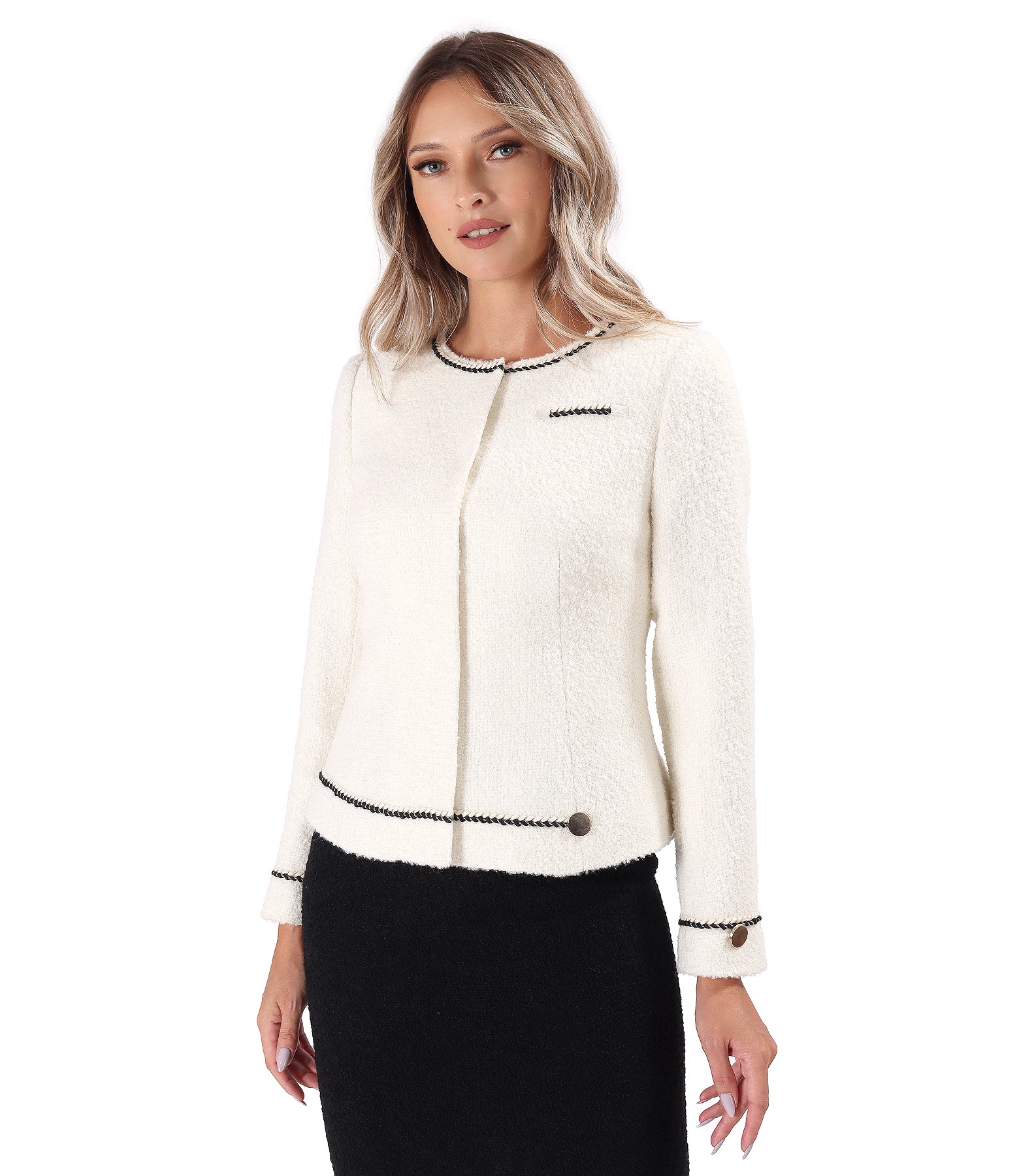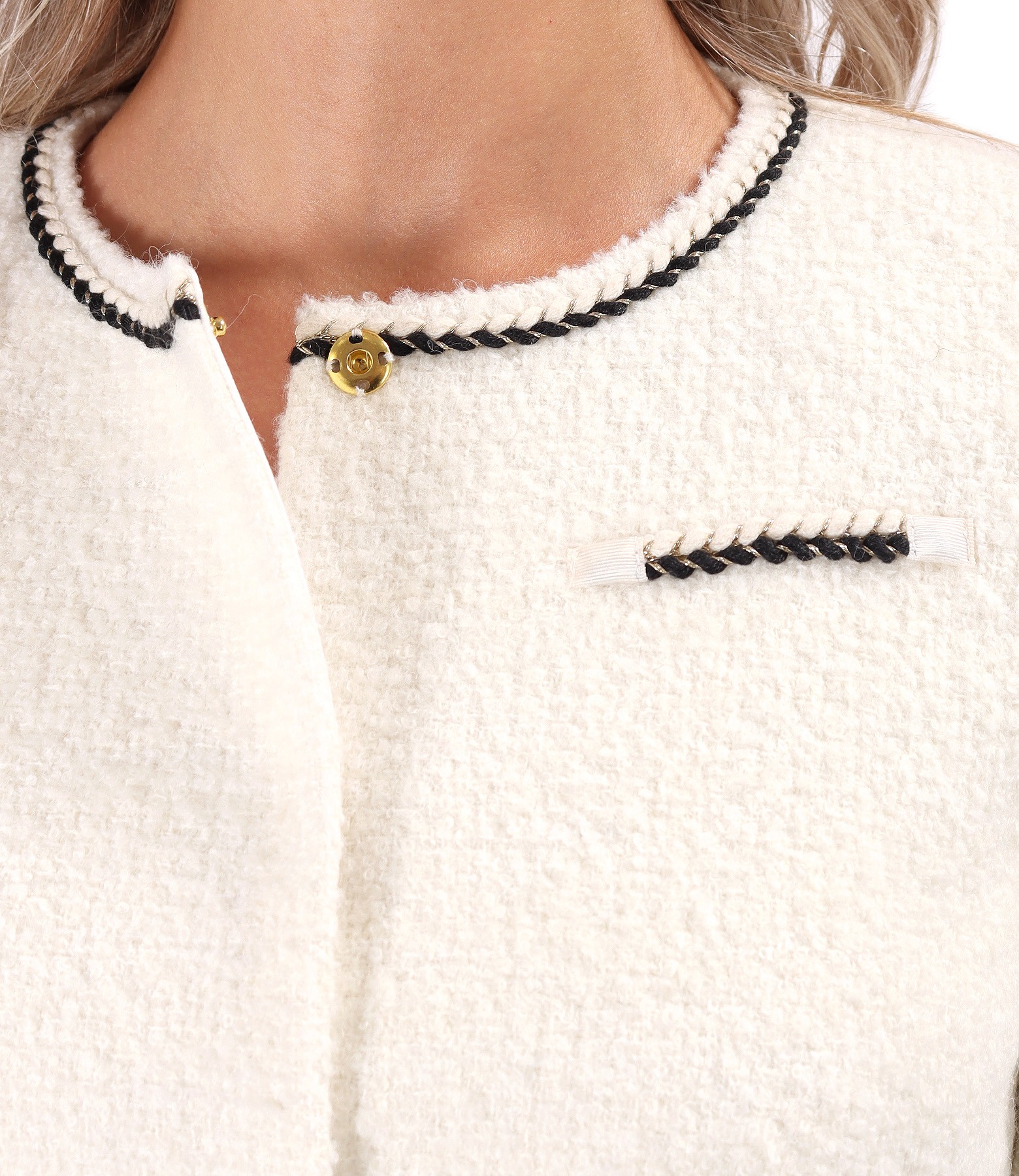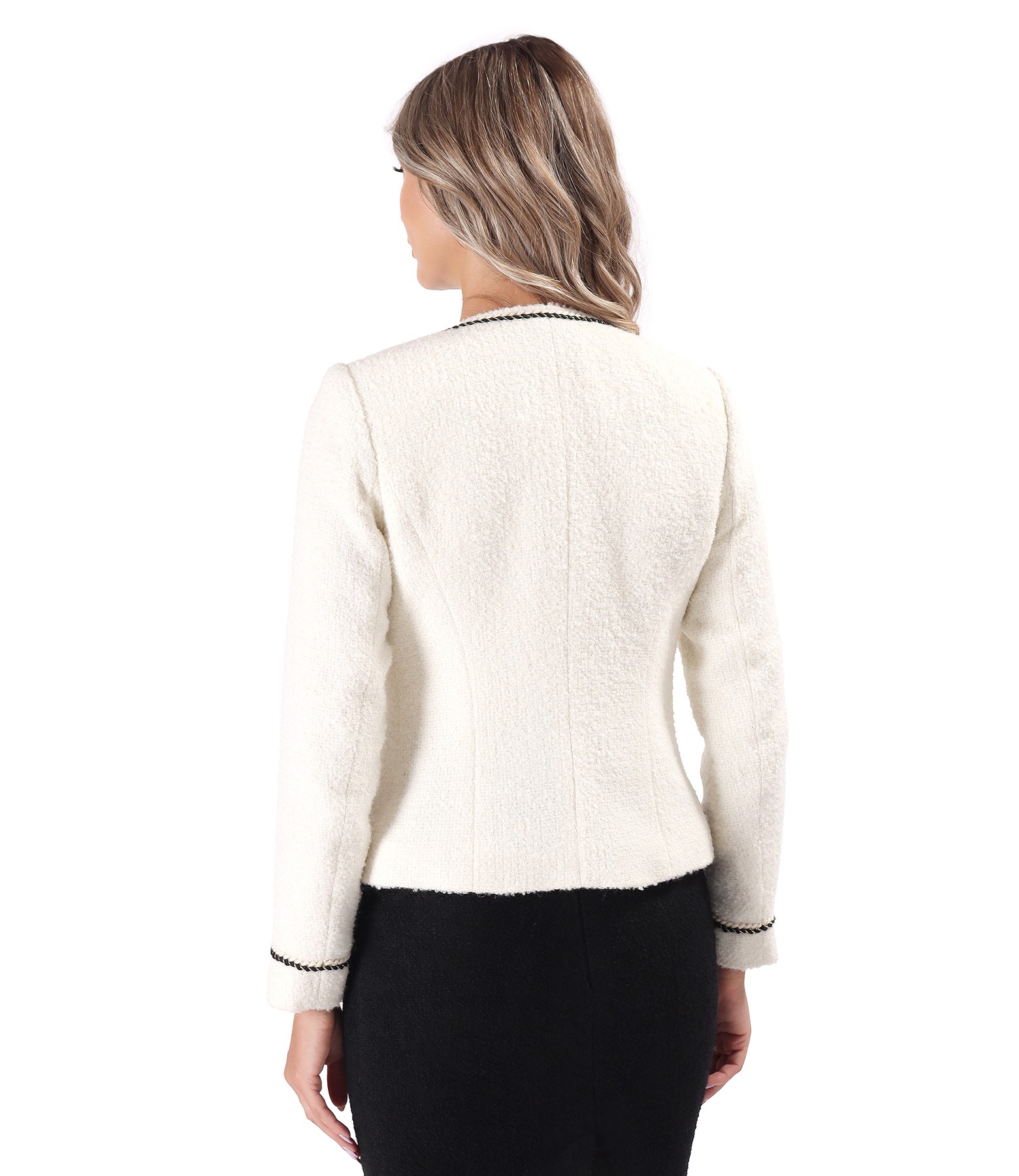 Sacou office din bucle cu lana si cu pasmanterie (Alb-Ecru), marimea