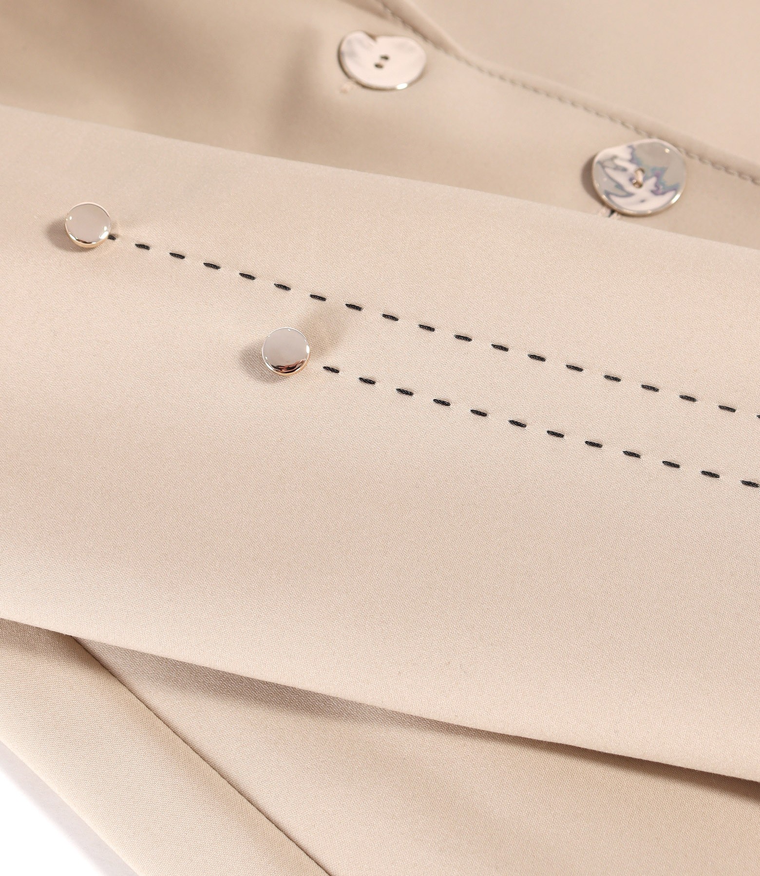 Sacou office din bumbac elastic cu aspect catifelat, captusit, cu decolteu adanc si cu cusatura decorativa in contrast. Se inchide cu doi nasturi aurii pe fata. Pe maneci cusatura decorativa in contrast se termina cu 2 nasturi aurii.