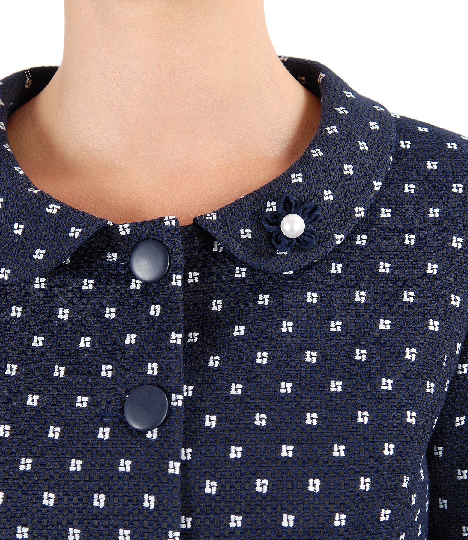 Sacou office din bumbac gros brocat, captusit, cu guler rotund si pin decorativ pe guler . Se inchide cu 5 nasturi, pana la baza gulerului.