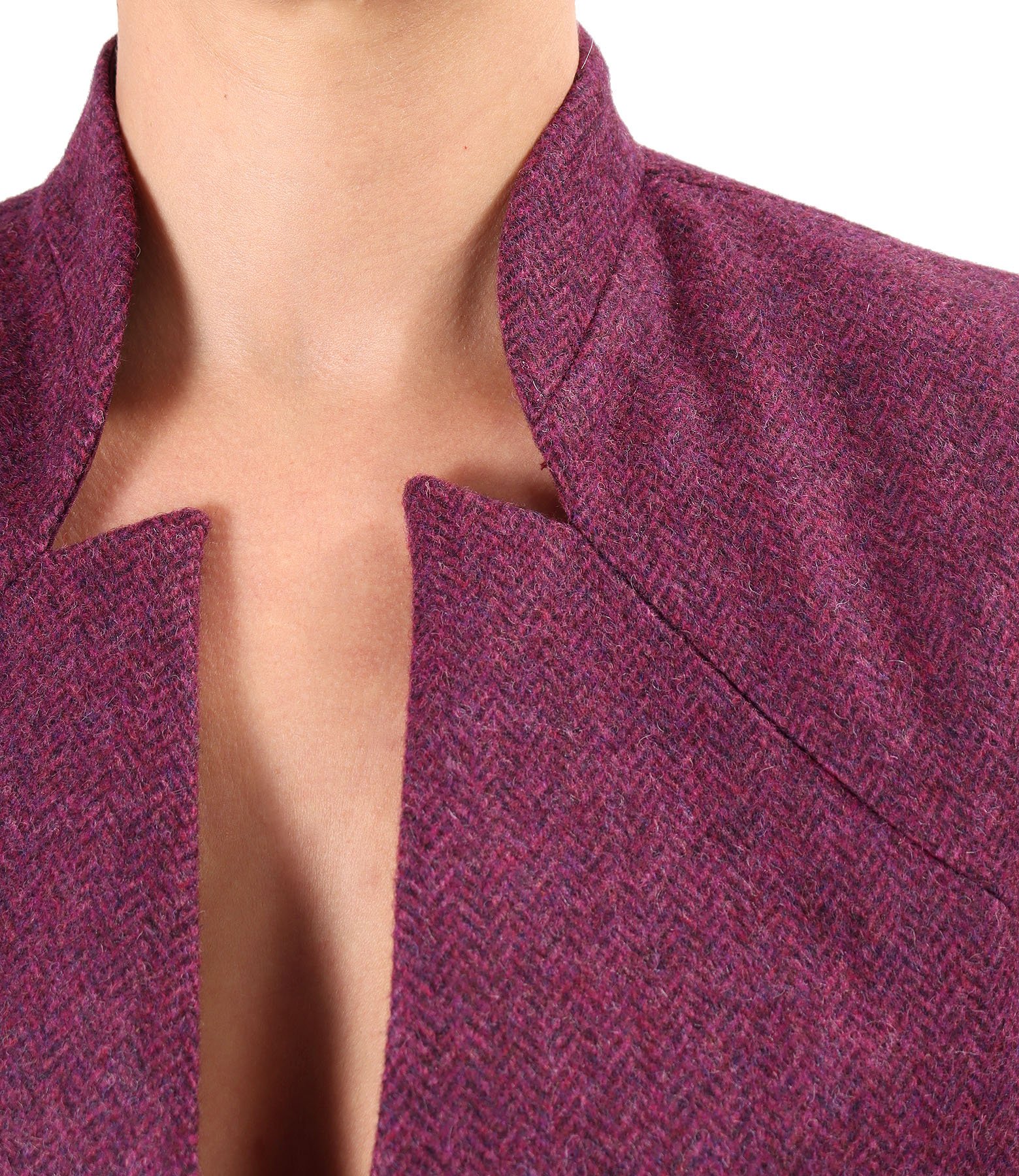 Sacou office din stofa cu lana, dublat cu viscoza, cu guler gen tunica. Se inchide cu un nasture pe mijloc fata.