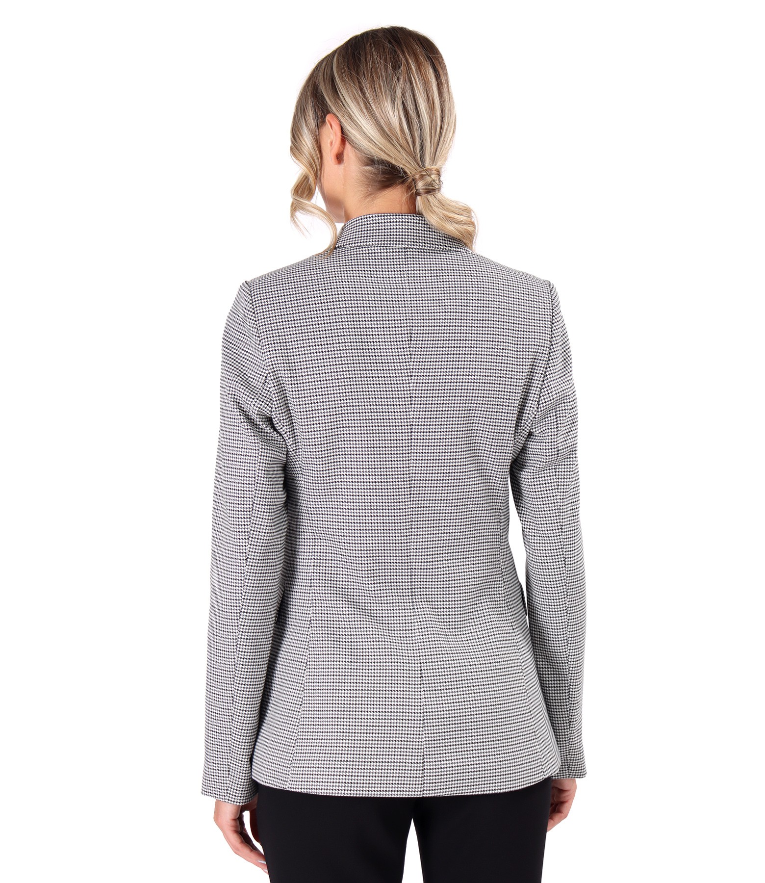 Sacou office din stofa elastic cu viscoza, captusit, cu guler si revere. Se inchide cu 1 nasture si contra-nasture.