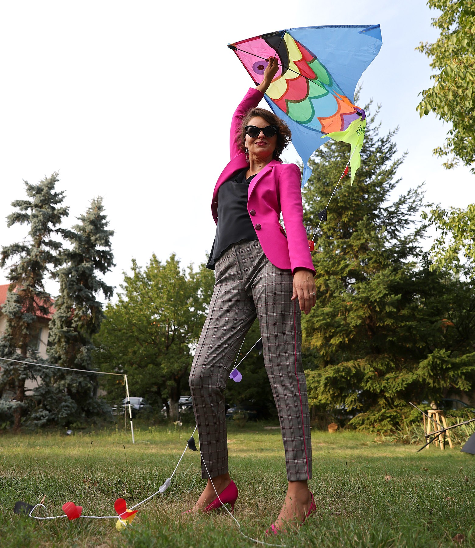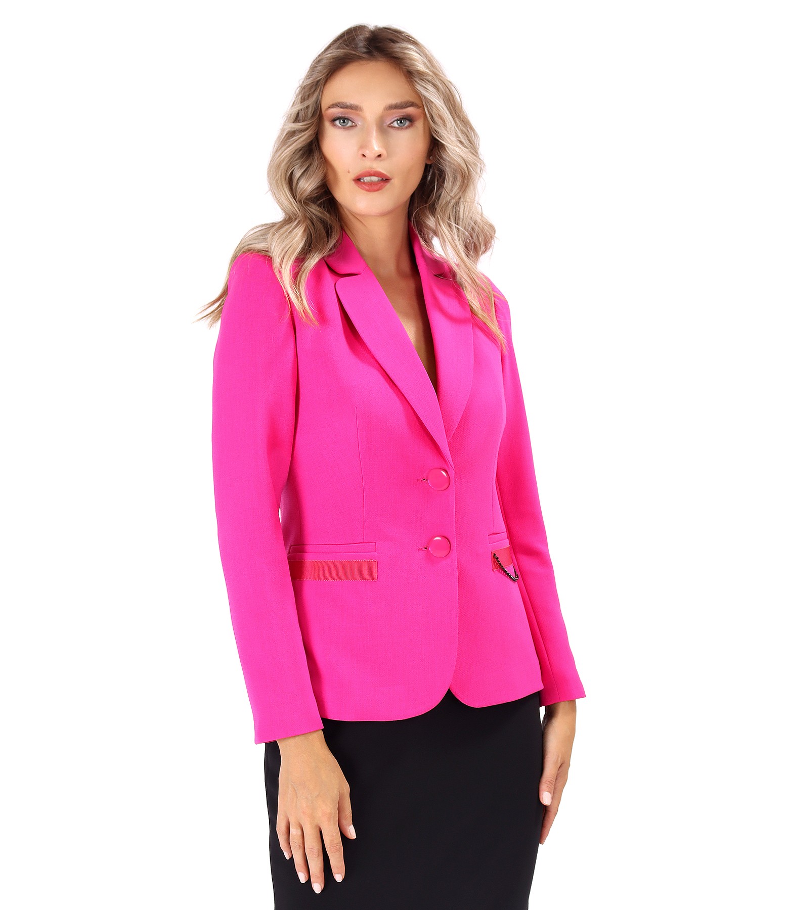 Sacou office din stofa elastica cu lant decorativ (Ciclamen), marimea