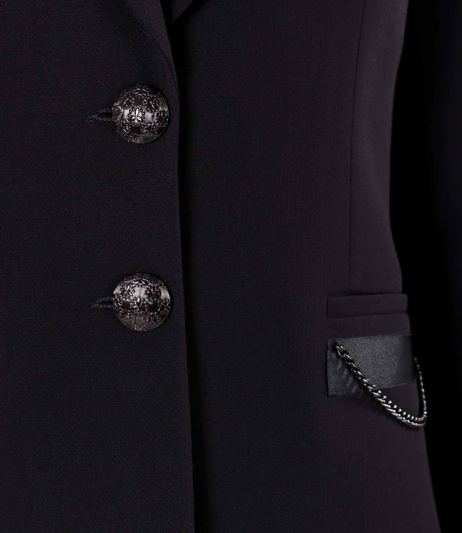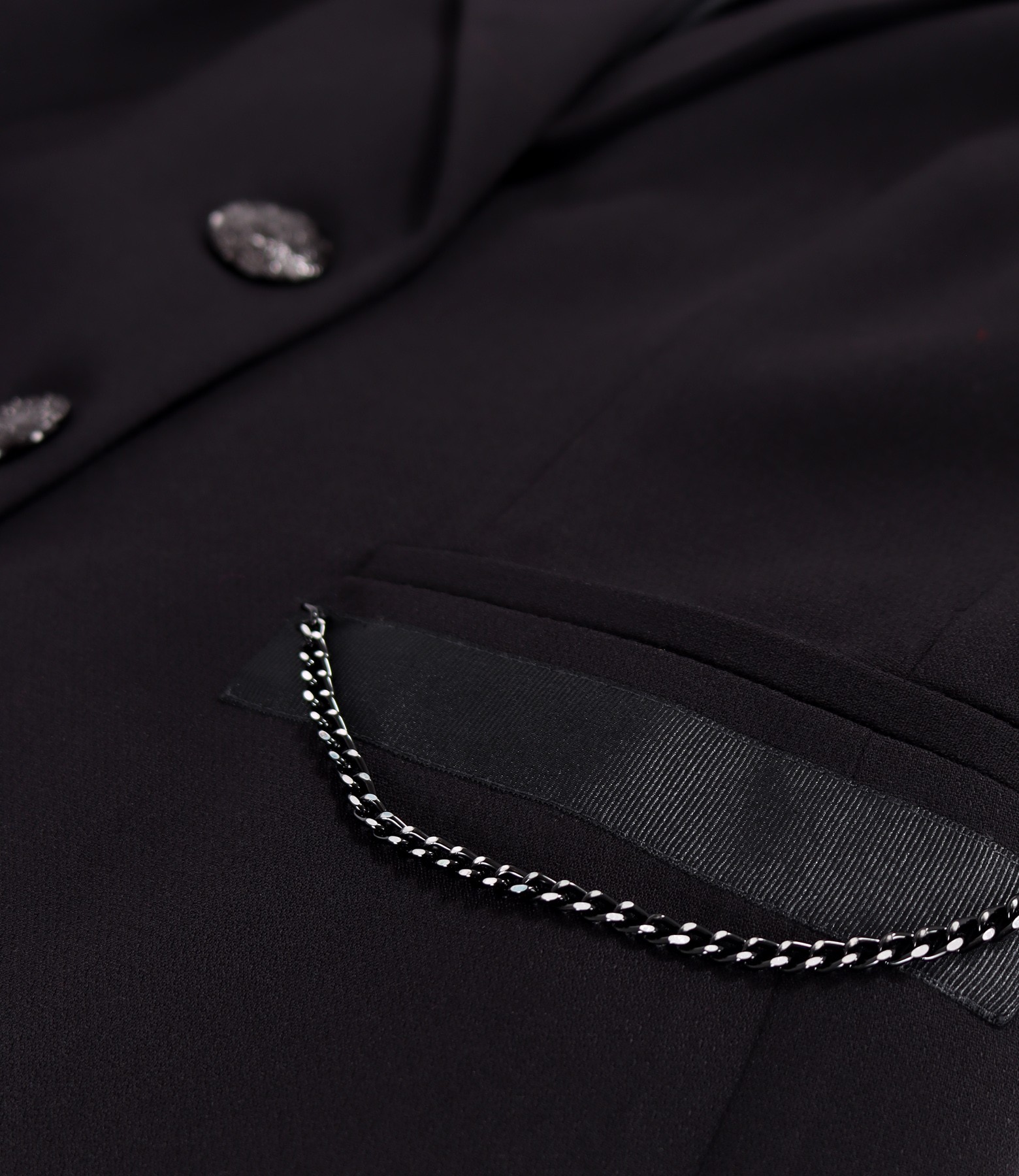 Sacou office din stofa elastica cu lant decorativ (Negru), marimea
