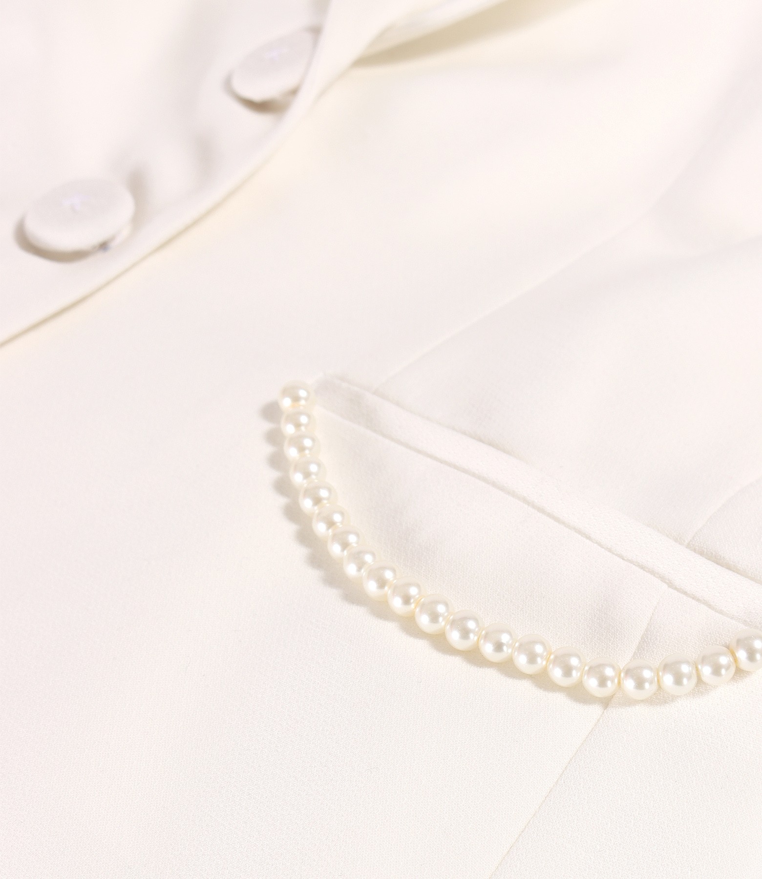Sacou office din stofa elastica cu perle decorative (Alb-Ecru), marimea