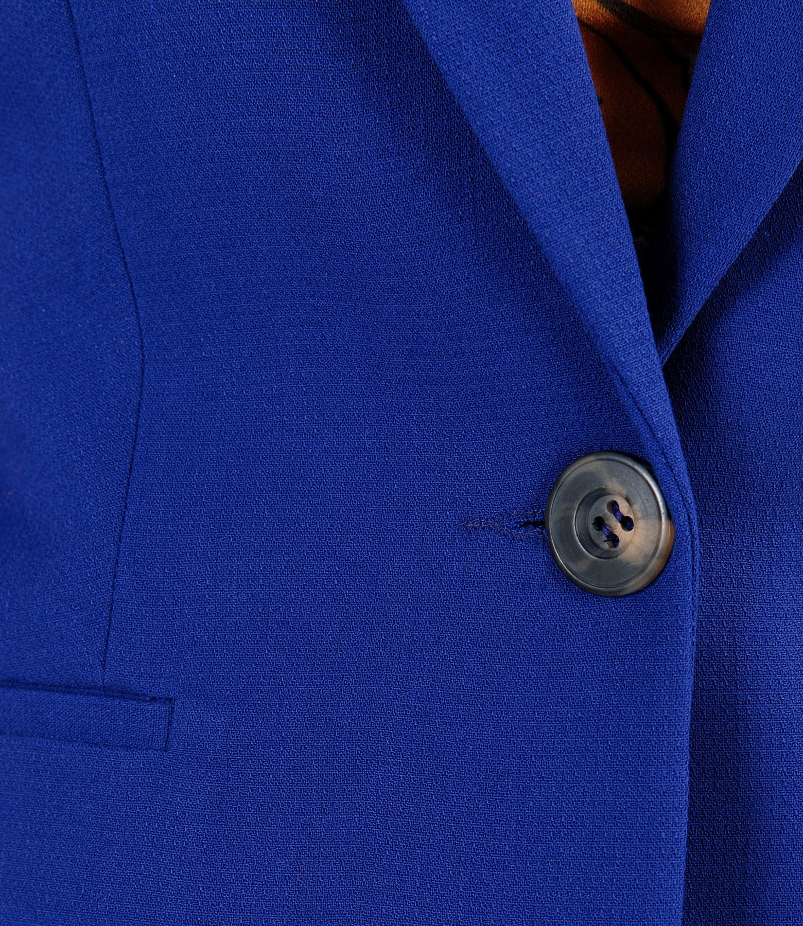 Sacou office din stofa elastica, captusit, cu decolteu adanc, buzunare laterale pe fata si maneci lungi cu 4 nasturi. Se inchide cu un nasture pe fata.