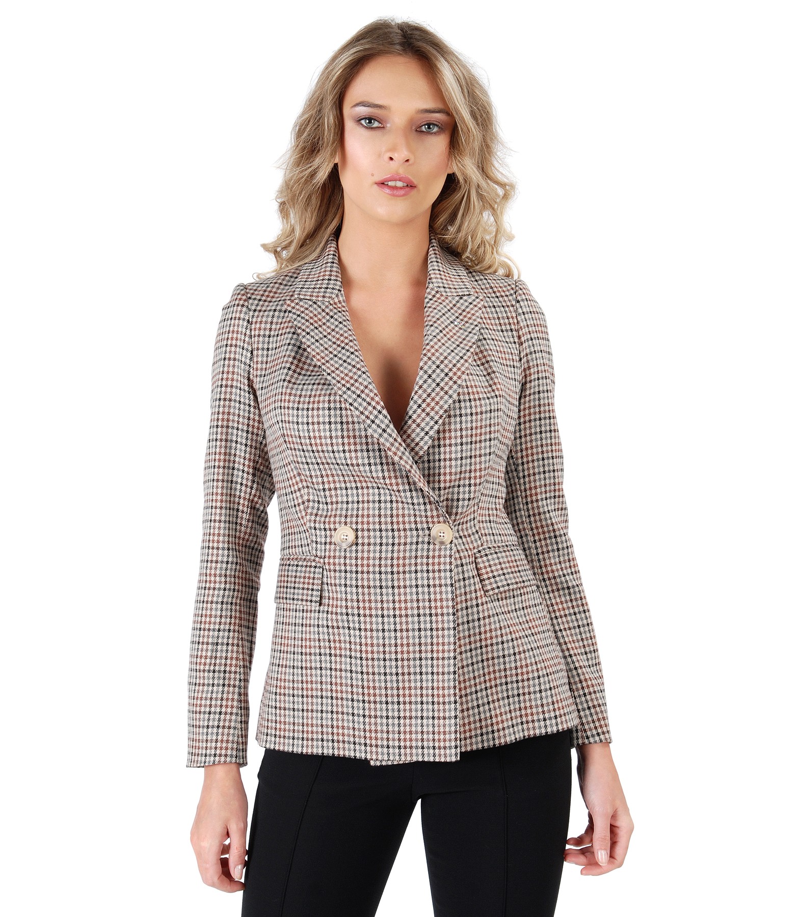 Sacou office din stofa in carouri cu aplicatie de cristale