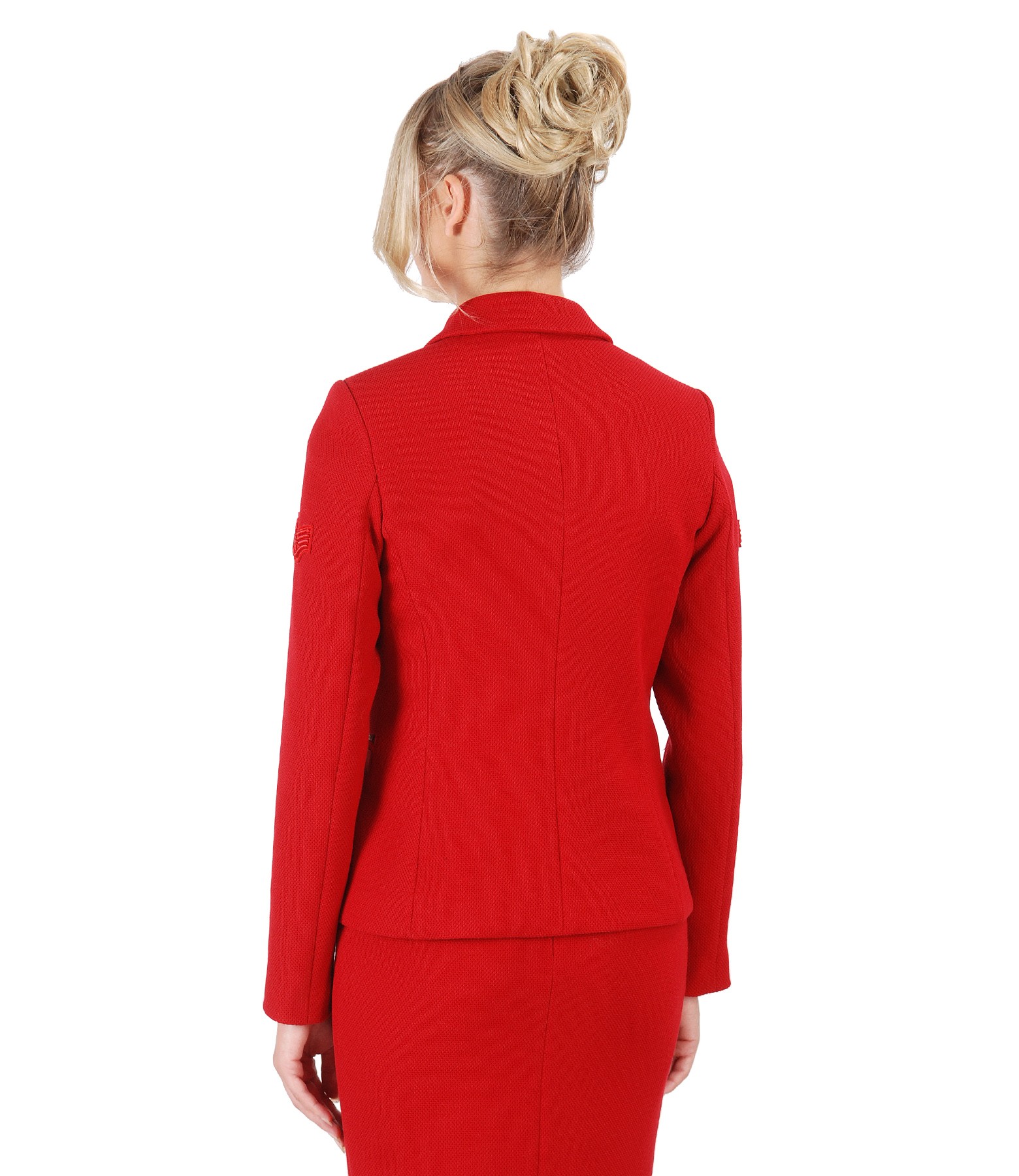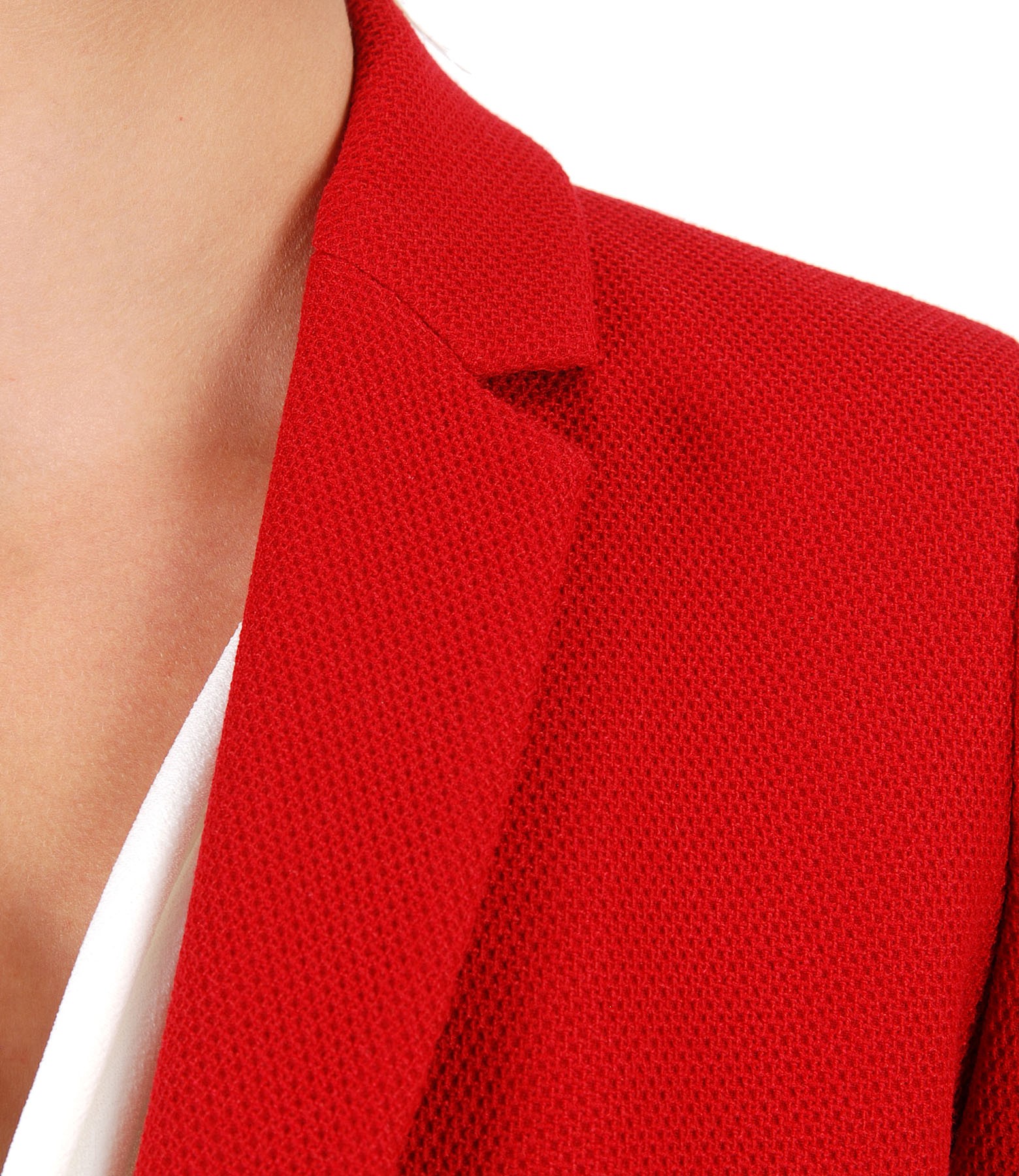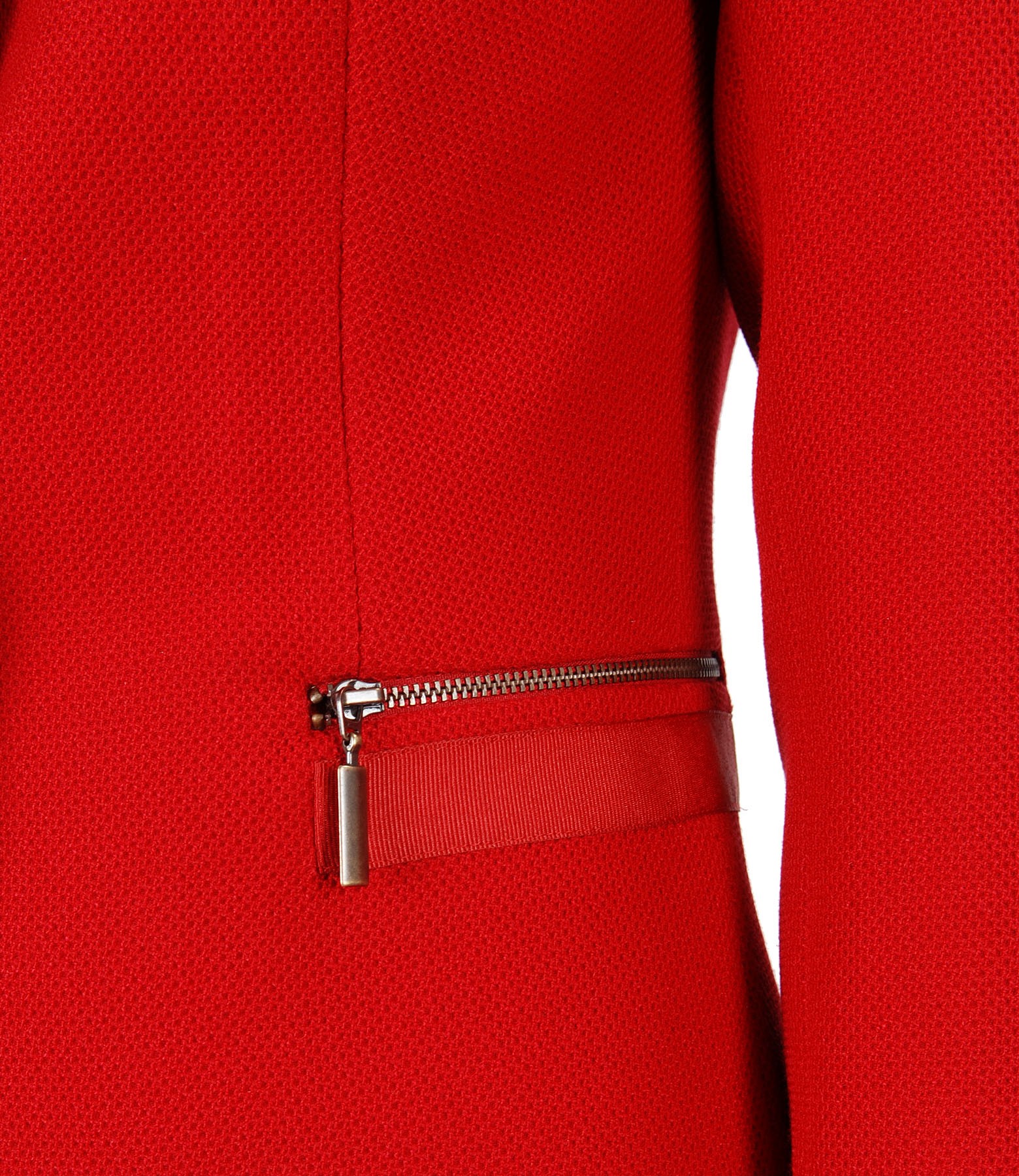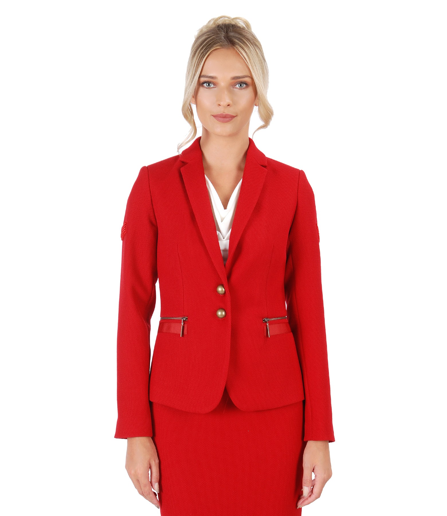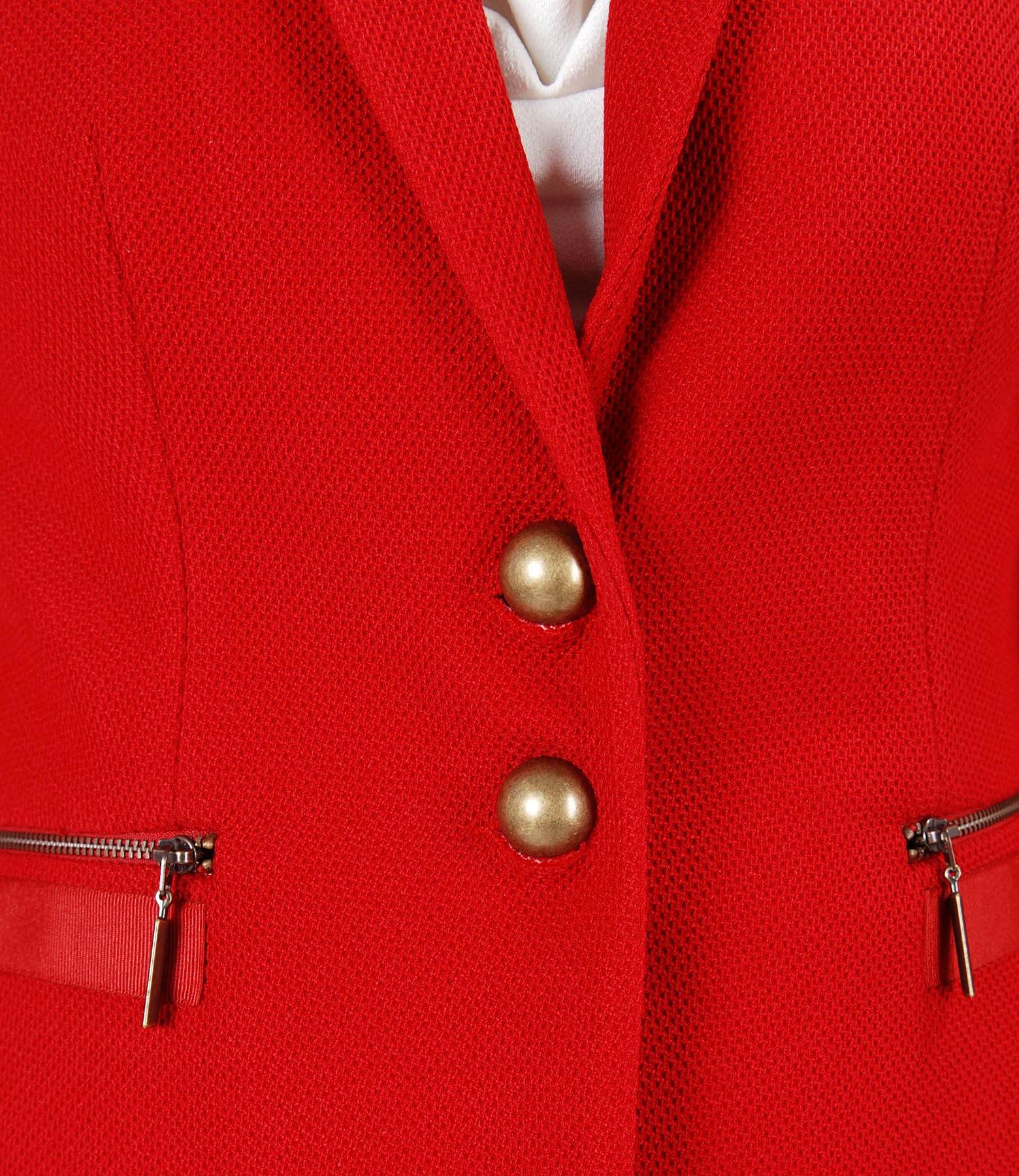 Sacou office din stofa texturata, captusit, cu decolteu adanc, buzunare cu fermoar in talie si banda de rips. Se inchide cu doi nasturi pe fata.