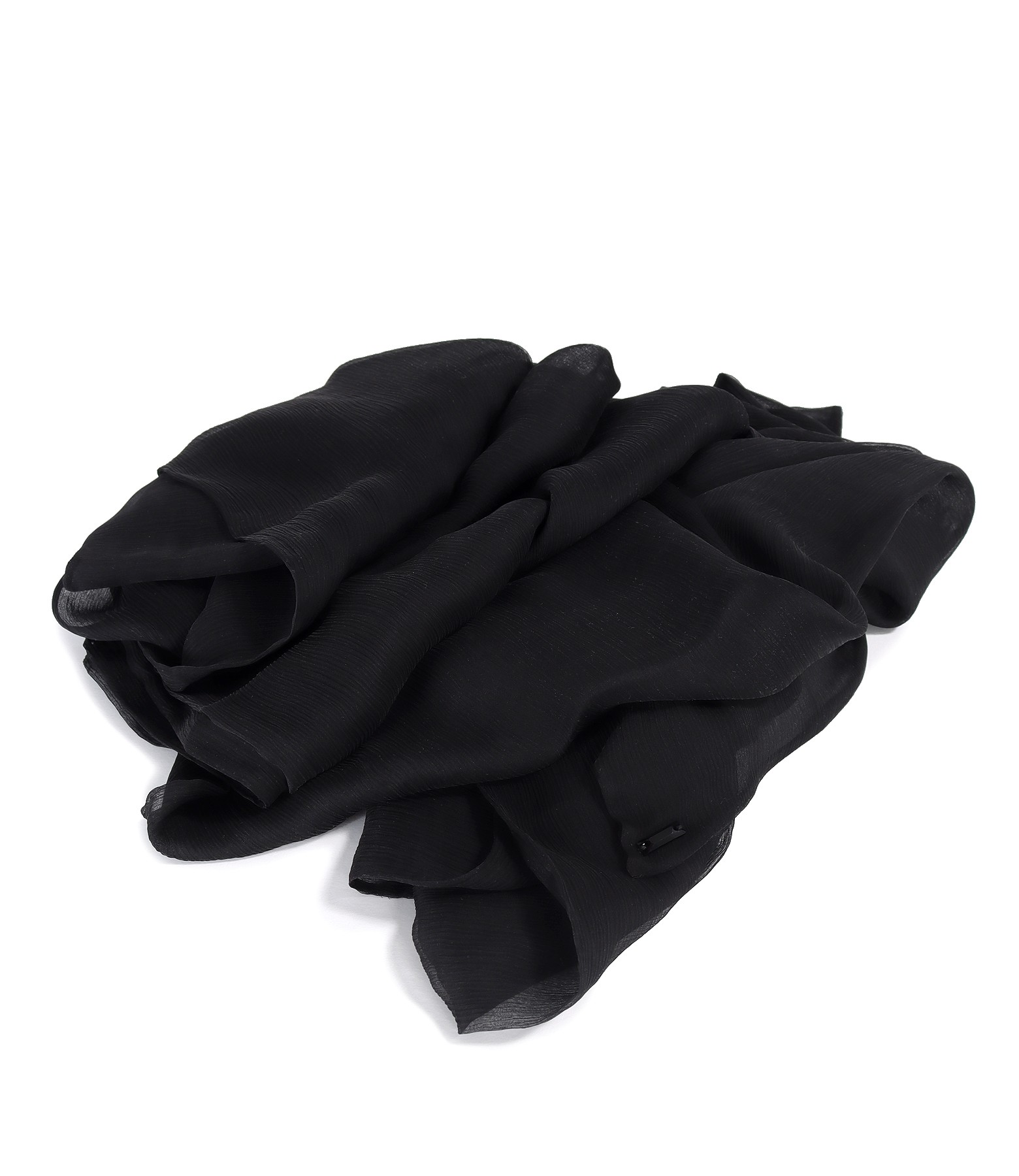 Sal din voal de matase naturala, de forma dreptunghiulara, dublata cu acelasi material, cu aplicate de cristal in forma de inima. Dimensiune 65cm latime, 220cm lungime.