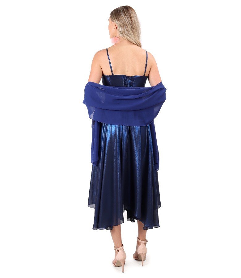 Rochie de ocazie cu fusta din voal sidefat dublat cu viscoza si corsaj tip corset, cu cupe si cu bretele ajustabile si funda in talie.