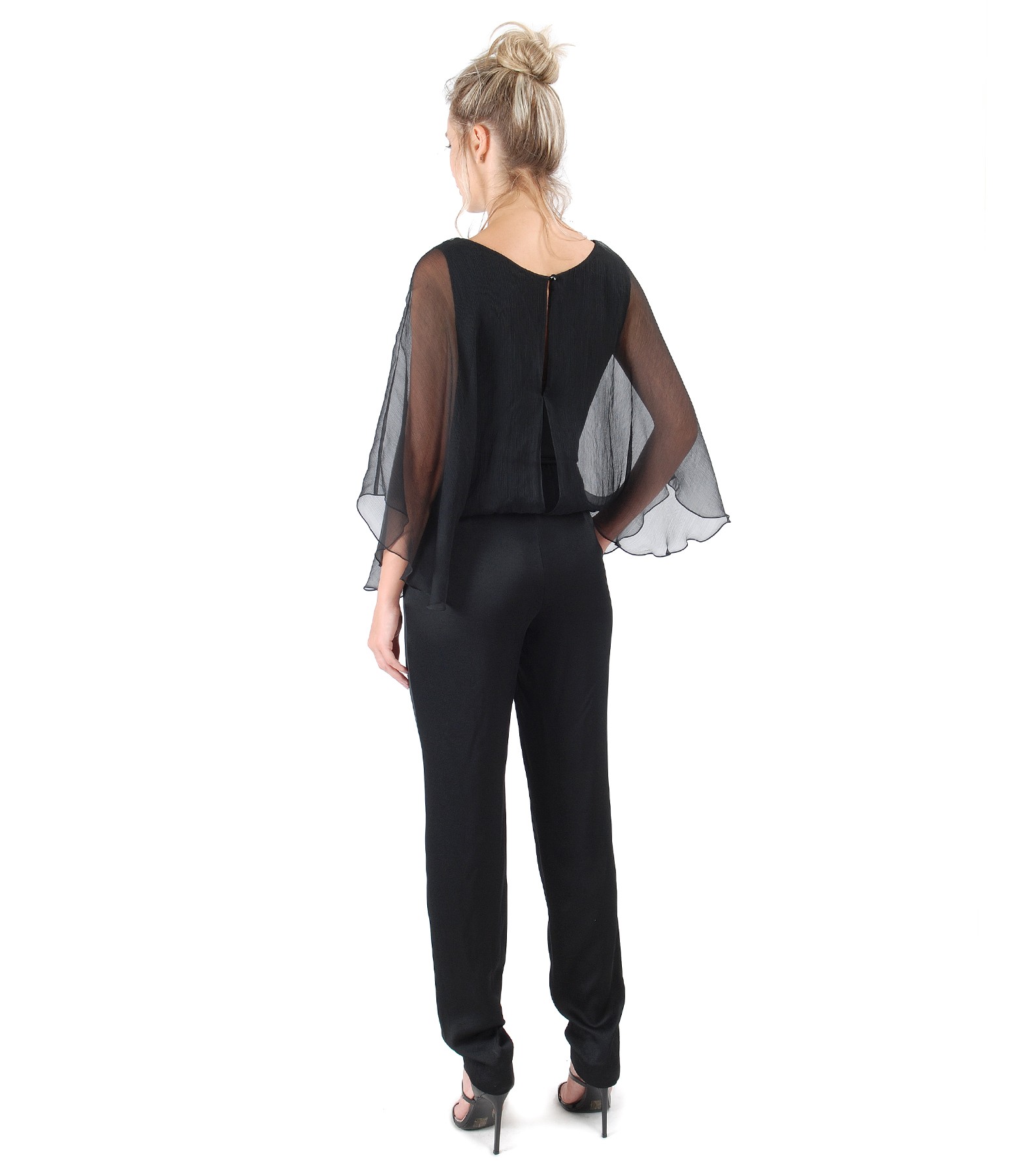 Salopeta cu capa din voal de matase naturala (Negru), marimea