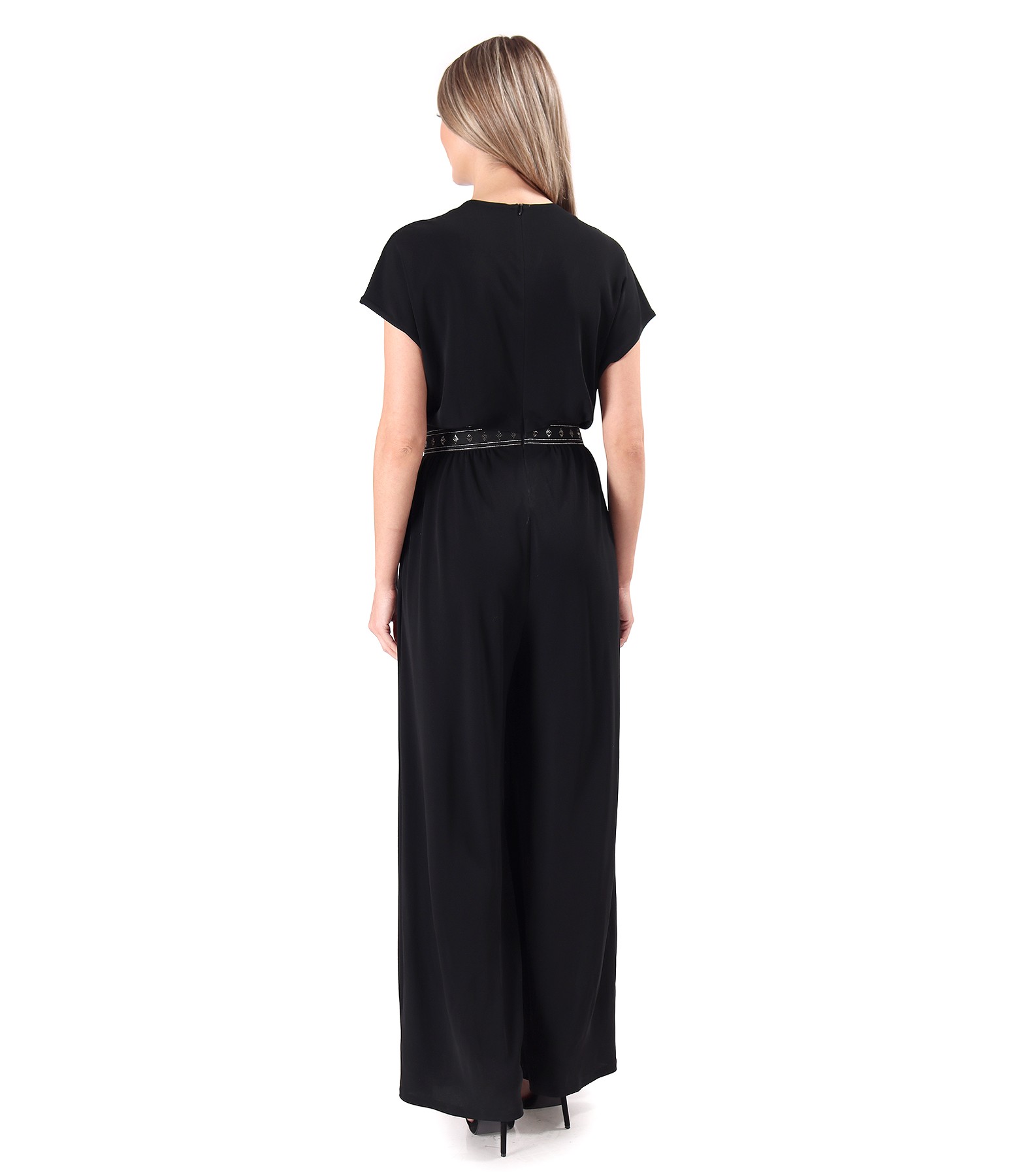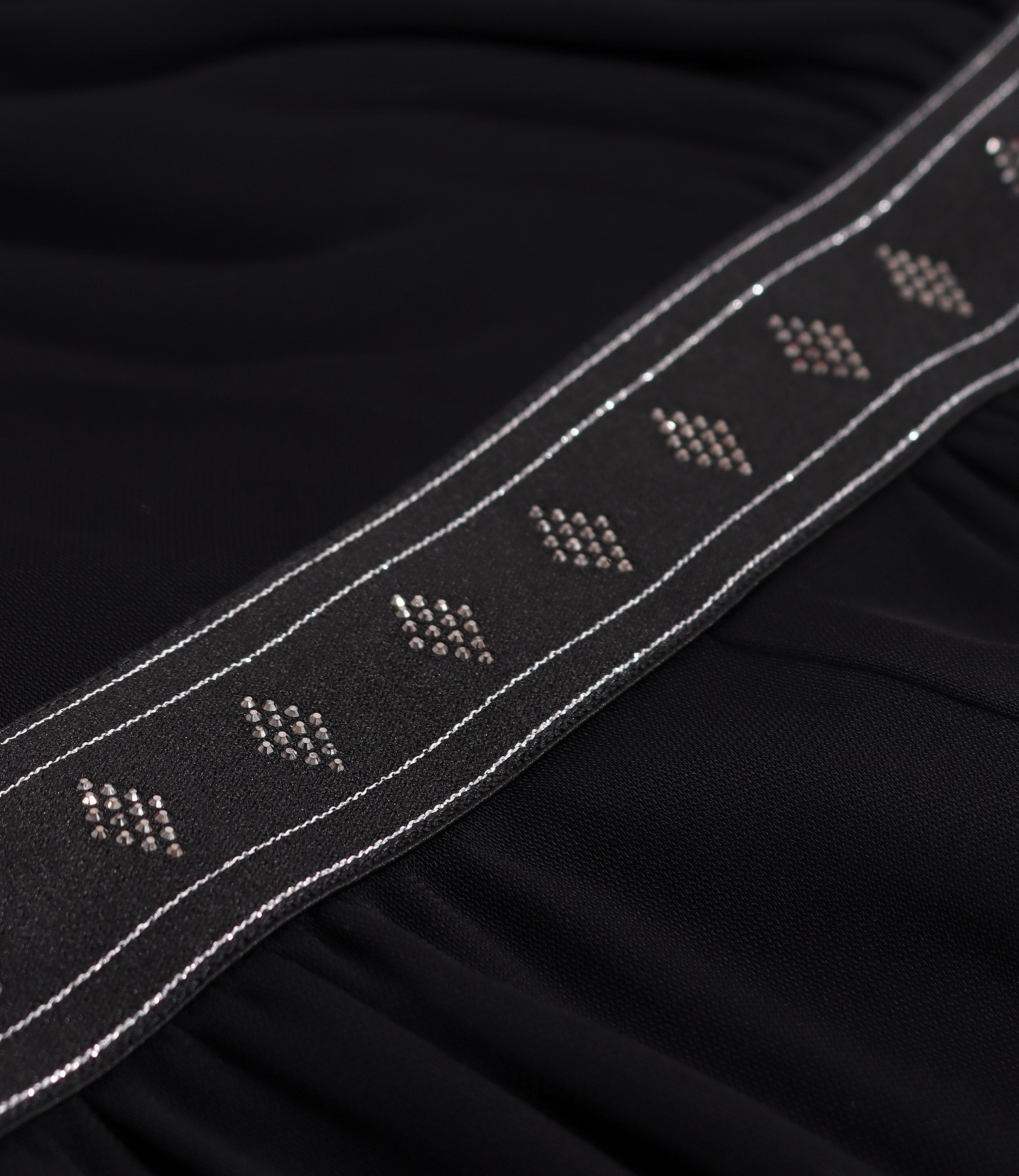 Salopeta de ocazie din viscoza, necaptusita, cu banda elastica decorativa in talie, buzunare laterale si maneca cazuta. Are bustul captusit. Se inchide cu fermoar ascuns pe mijloc spate.