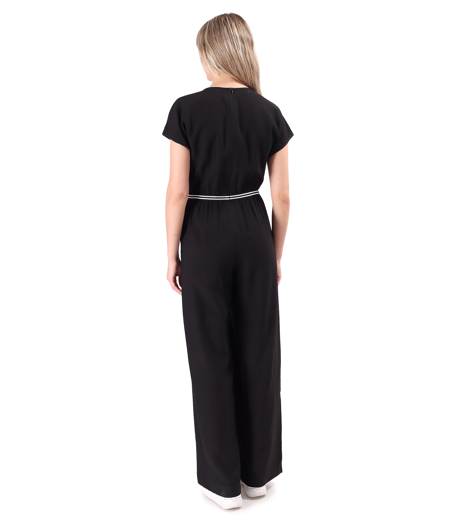 Salopeta lunga din viscoza cu buzunare si garnitura elastica (Negru), marimea