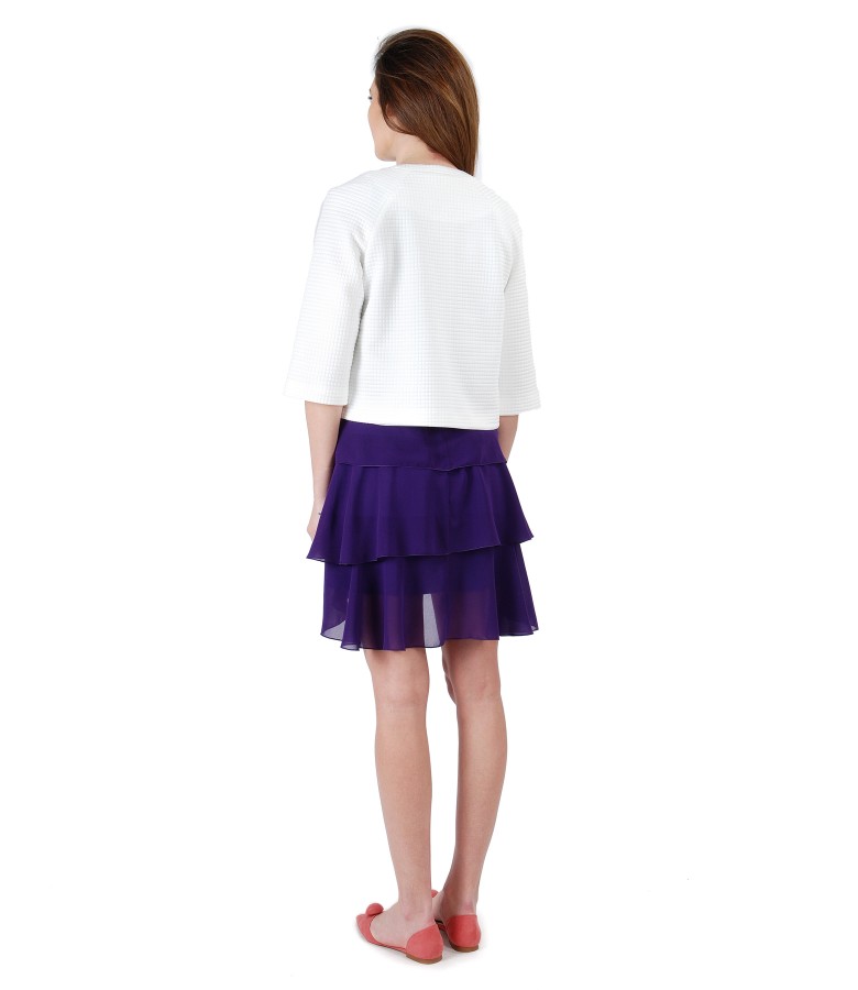 Tinuta de ocazie cu bolero si rochie din voal cu volane