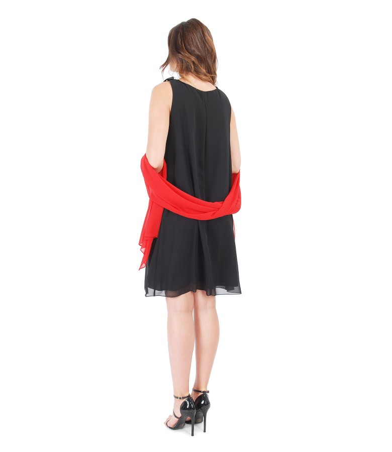 Rochie lejera din voal, fara maneci, cu falduri pe fata si aplicatie de cristale pe decolteu. Nu are sistem de inchidere.
