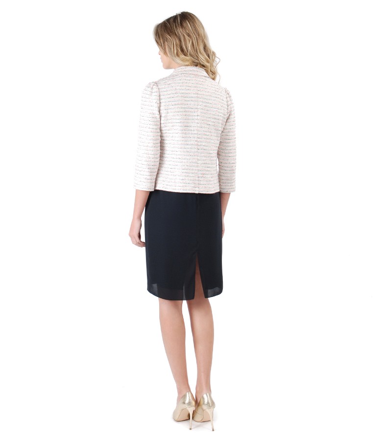 Sacou din dantela cu bumbac si fir de efect, dublat cu viscoza, cu maneci 3/4 si buzunare pe fata.