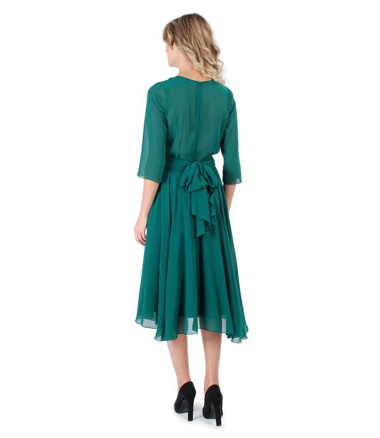 Rochie de seara din voal, captusita cu viscoza, cu maneci 3/4, pieptii petrecuti si cordon in talie.