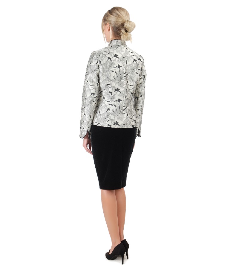 Sacou elegant din brocart cu motive florale, captusit, cu guler gen tunica si decolteu adanc.