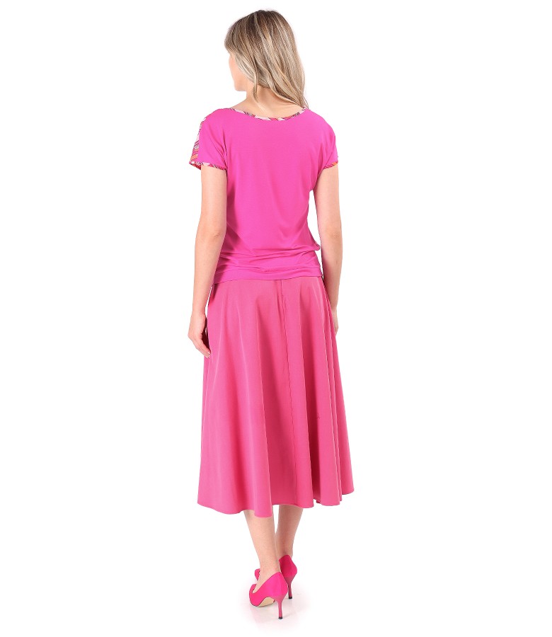Tinuta eleganta cu fusta semiclos si bluza cu fata din voal imprimat (), marimea