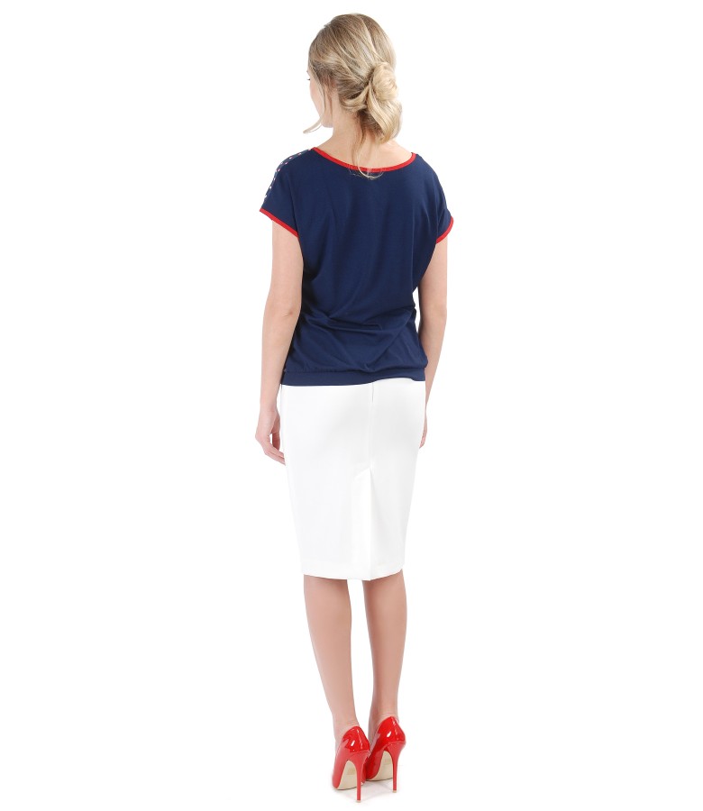 Tinuta eleganta cu bluza cu fata din viscoza imprimata si fusta creion