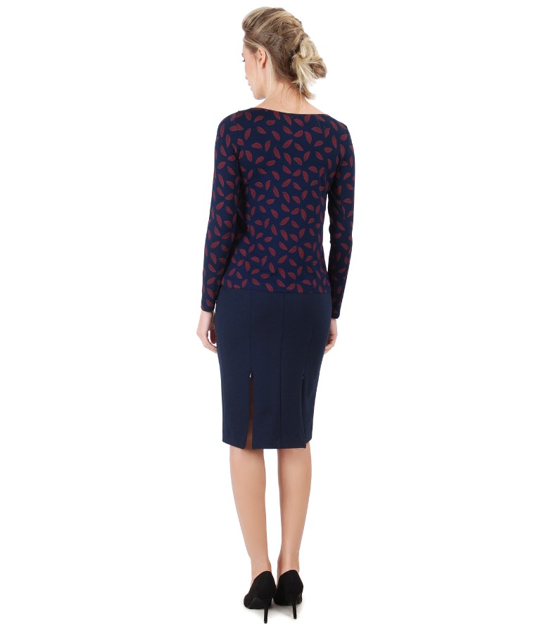 Tinuta eleganta cu bluza cu maneci lungi si fusta creion cu garnitura elastica