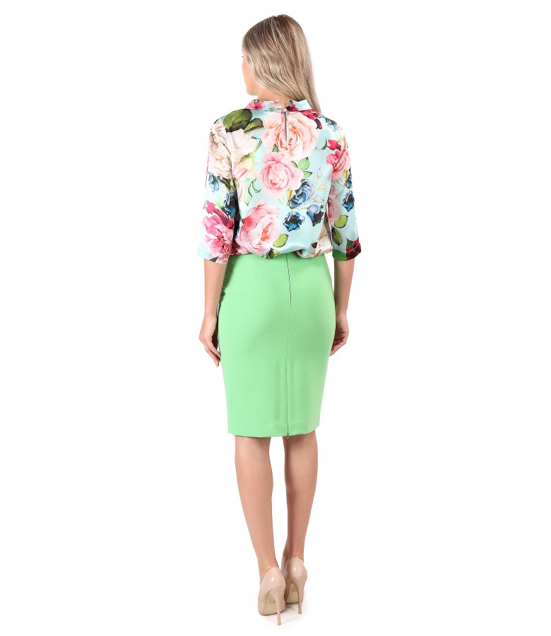 Tinuta eleganta cu bluza din matase naturala si fusta conica