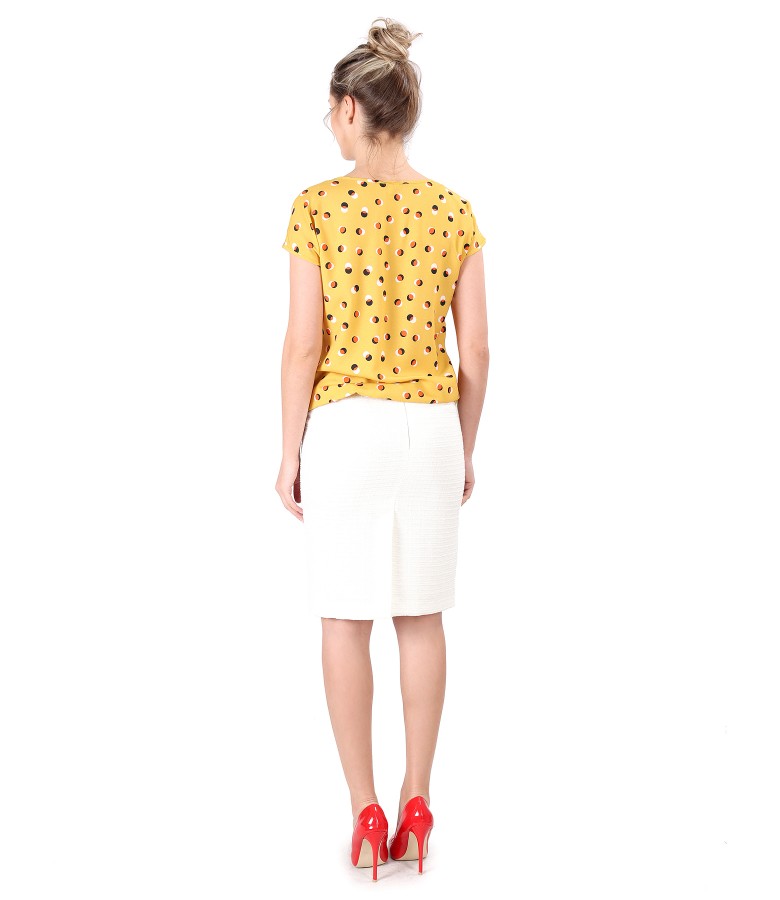 Tinuta eleganta cu bluza din viscoza cu buline si fusta creion