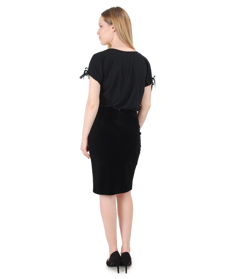 Tinuta eleganta cu bluza din viscoza imprimata si fusta creion din catifea