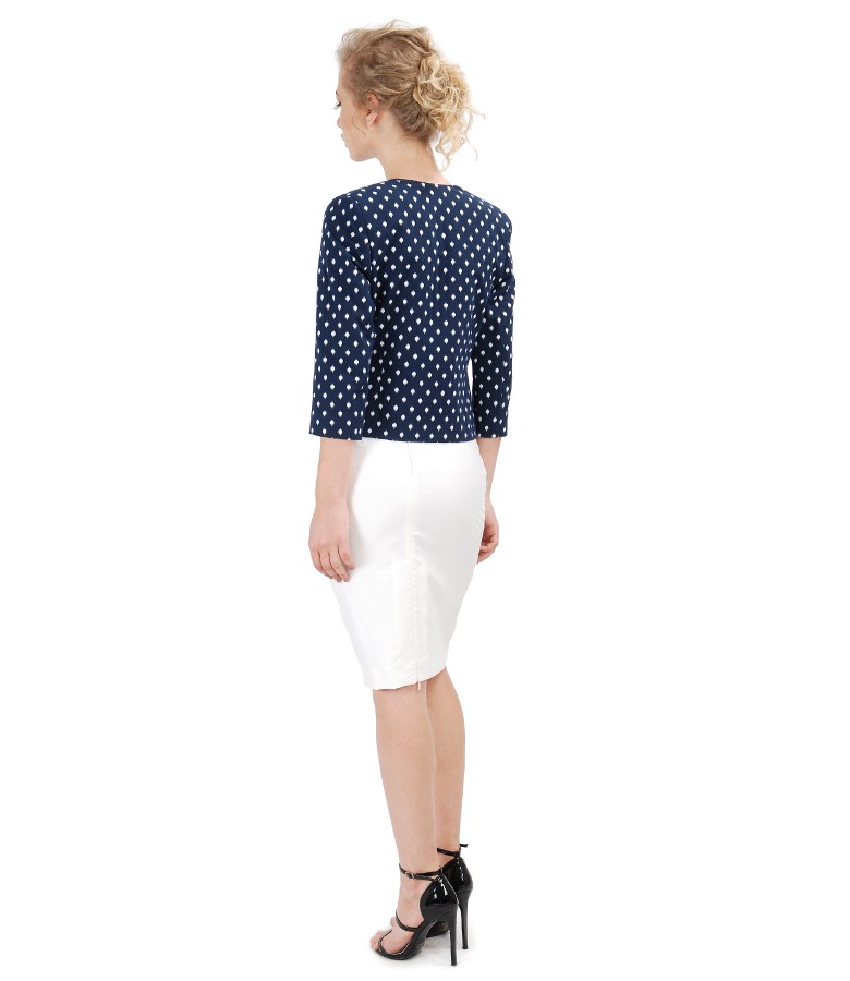 Tinuta eleganta cu fusta conica din viscoza si sacou din bumbac elastic