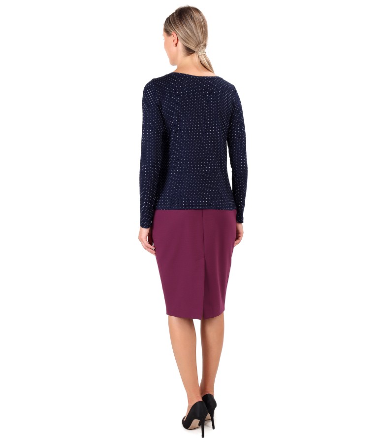 Tinuta eleganta cu fusta office si bluza imprimata cu picouri (), marimea