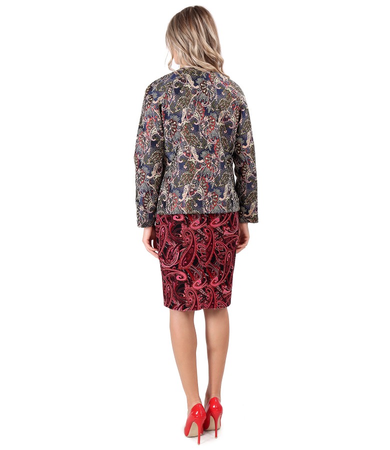 Tinuta eleganta cu jacheta din brocard cu rochie midi din catifea