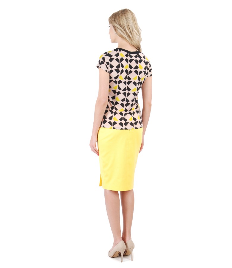 Tinuta eleganta cu tricou din jerse imprimat si fusta creion (), marimea