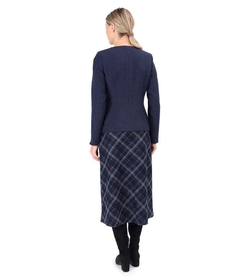 Tinuta office cu fusta midi in carouri si sacou cu fermoar pe fata (), marimea