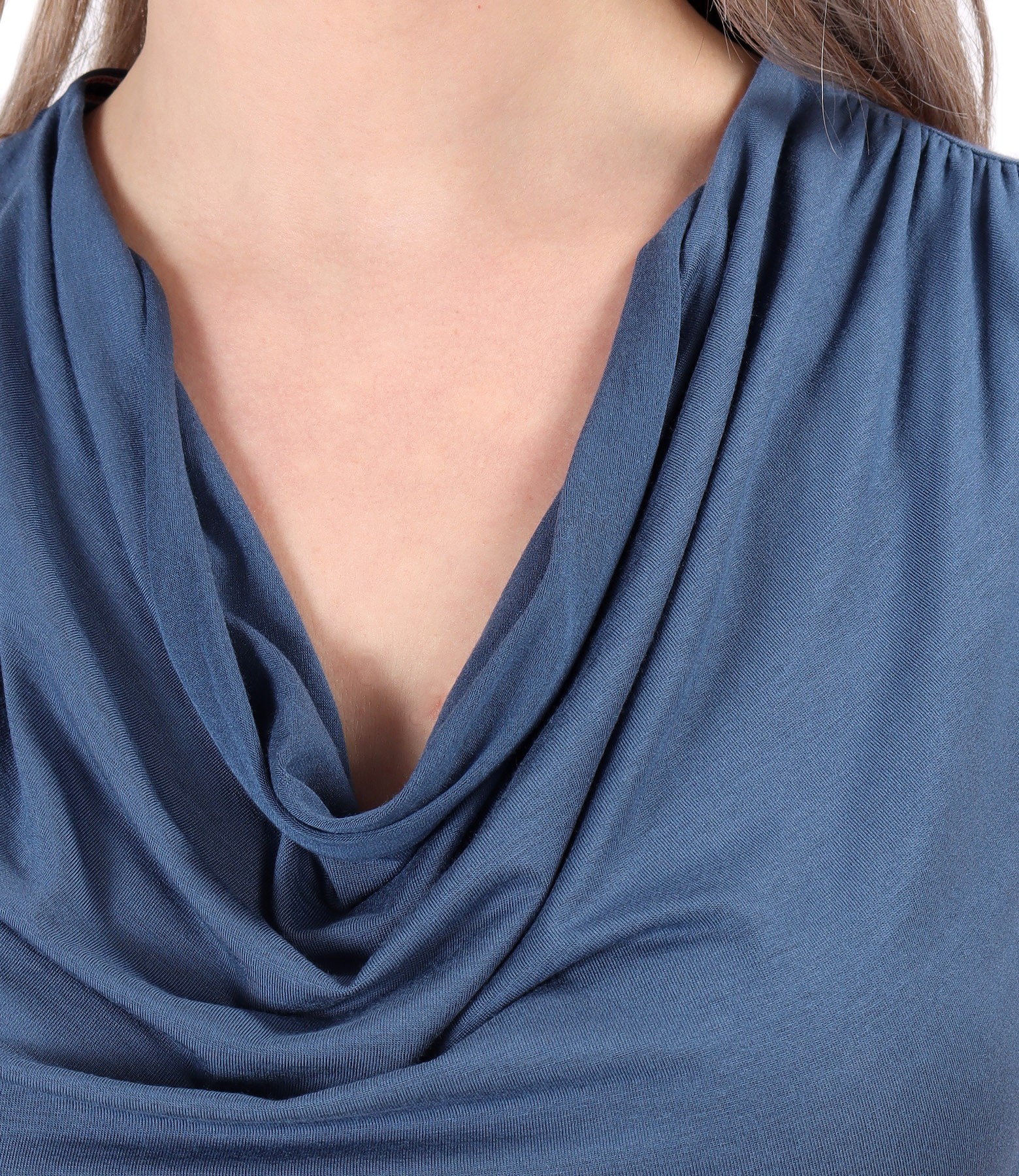 Tricou din jerse elastic cu falduri (Albastru), marimea