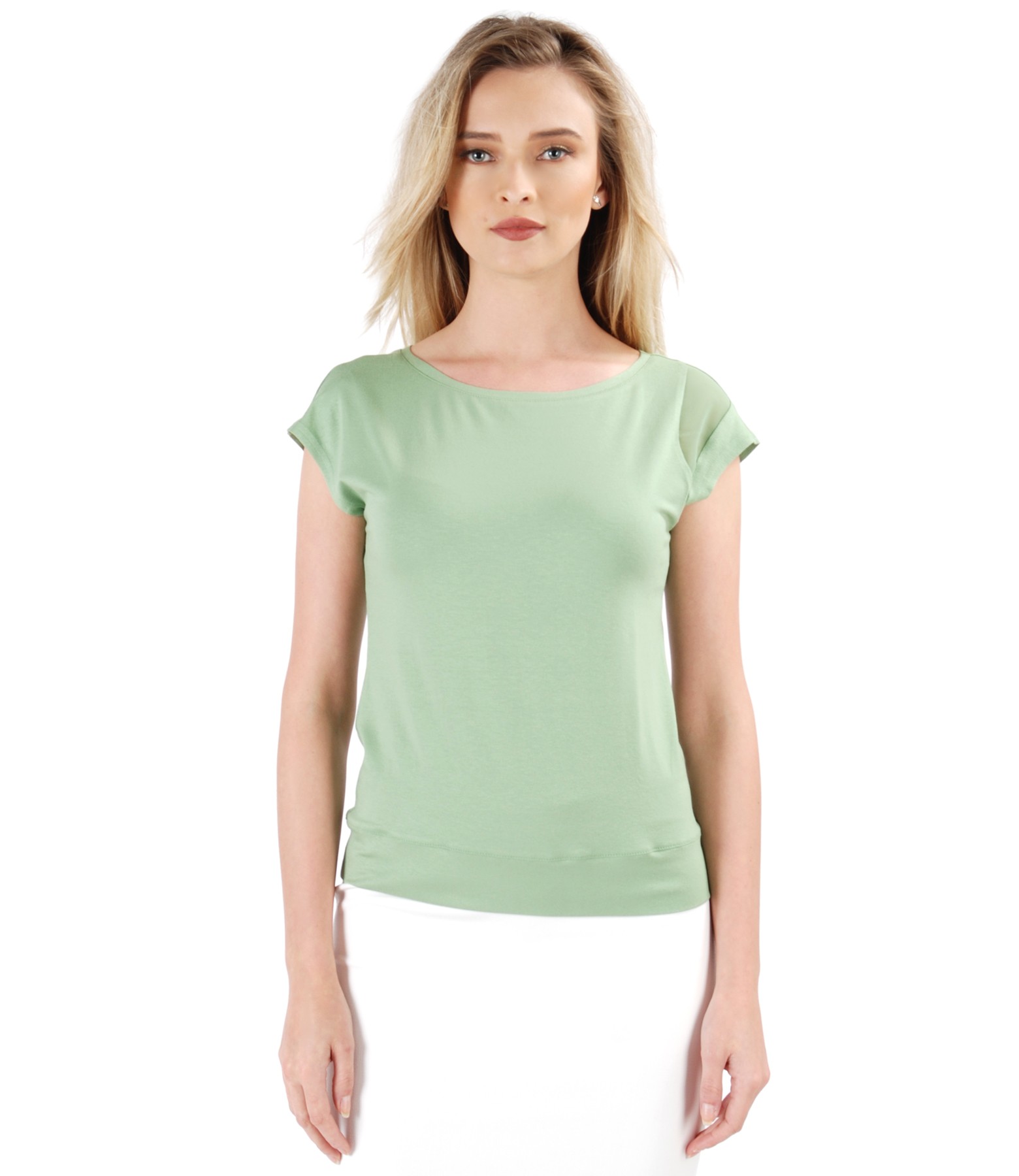 Tricou din jerse elastic cu insertie de voal (Verde de menta), marimea