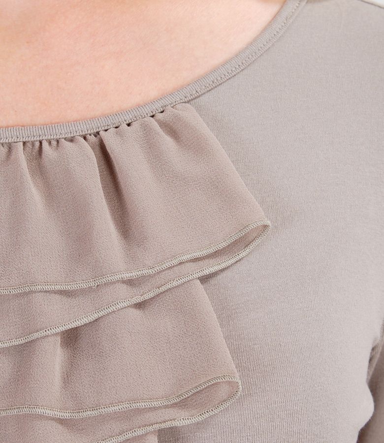 Tricou din jerse elastic cu jabou de voal (Grej), marimea