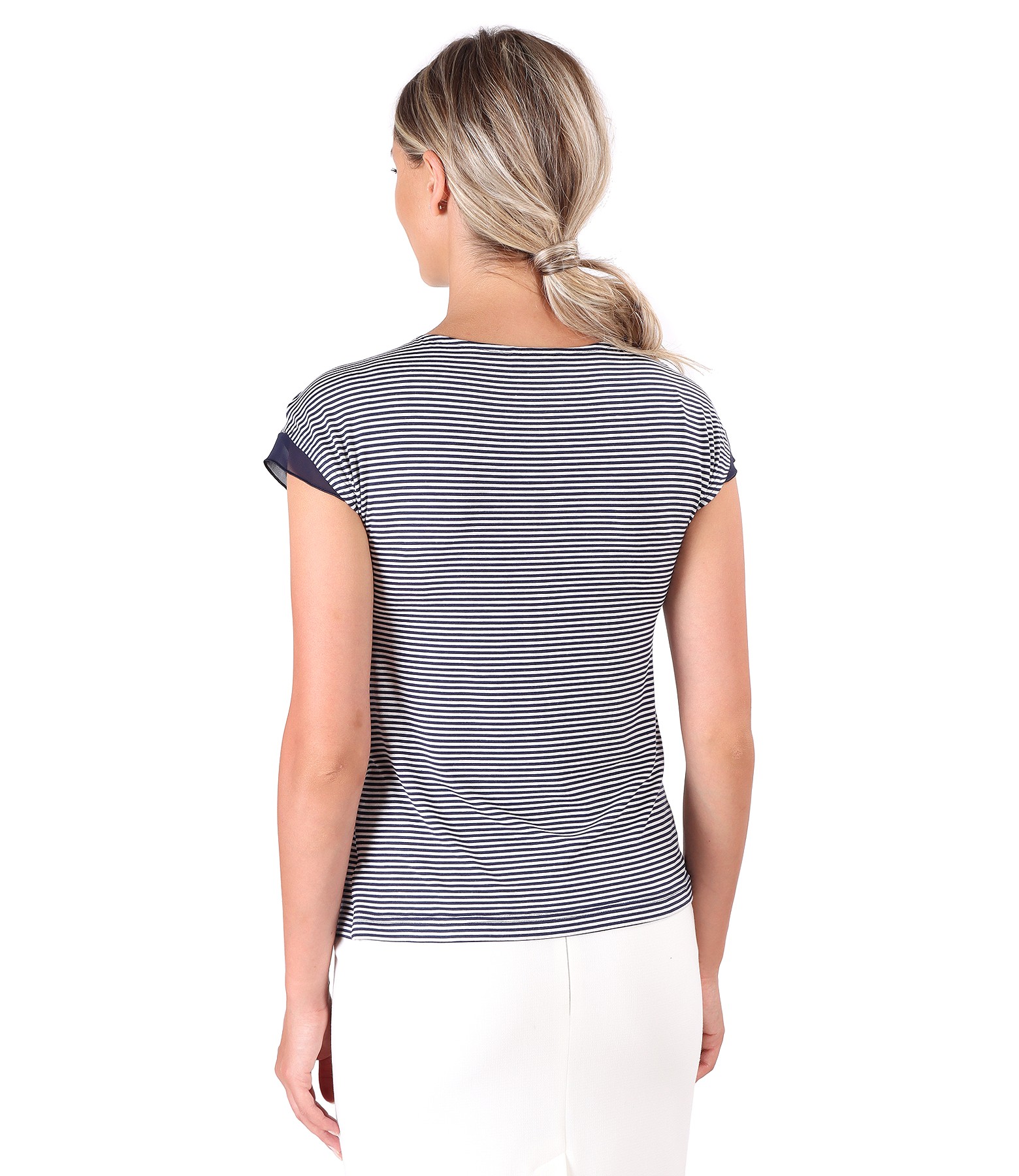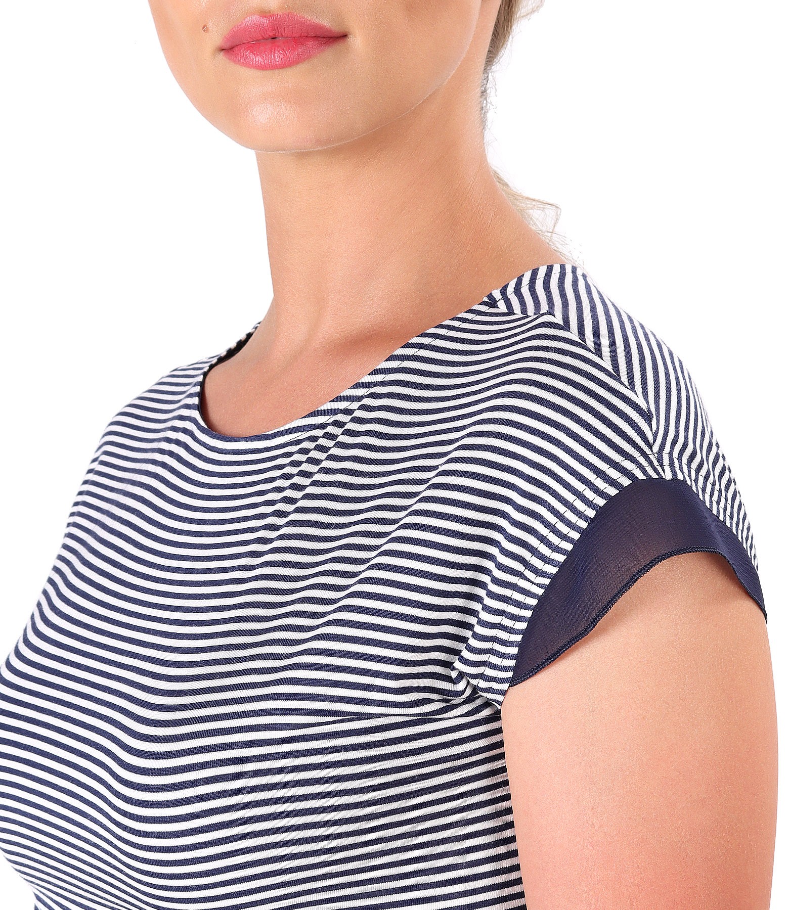 Tricou din jerse elastic moale, imprimat cu dungi, cu decolteu barcuta si umeri cazuti finisati cu garnitura.