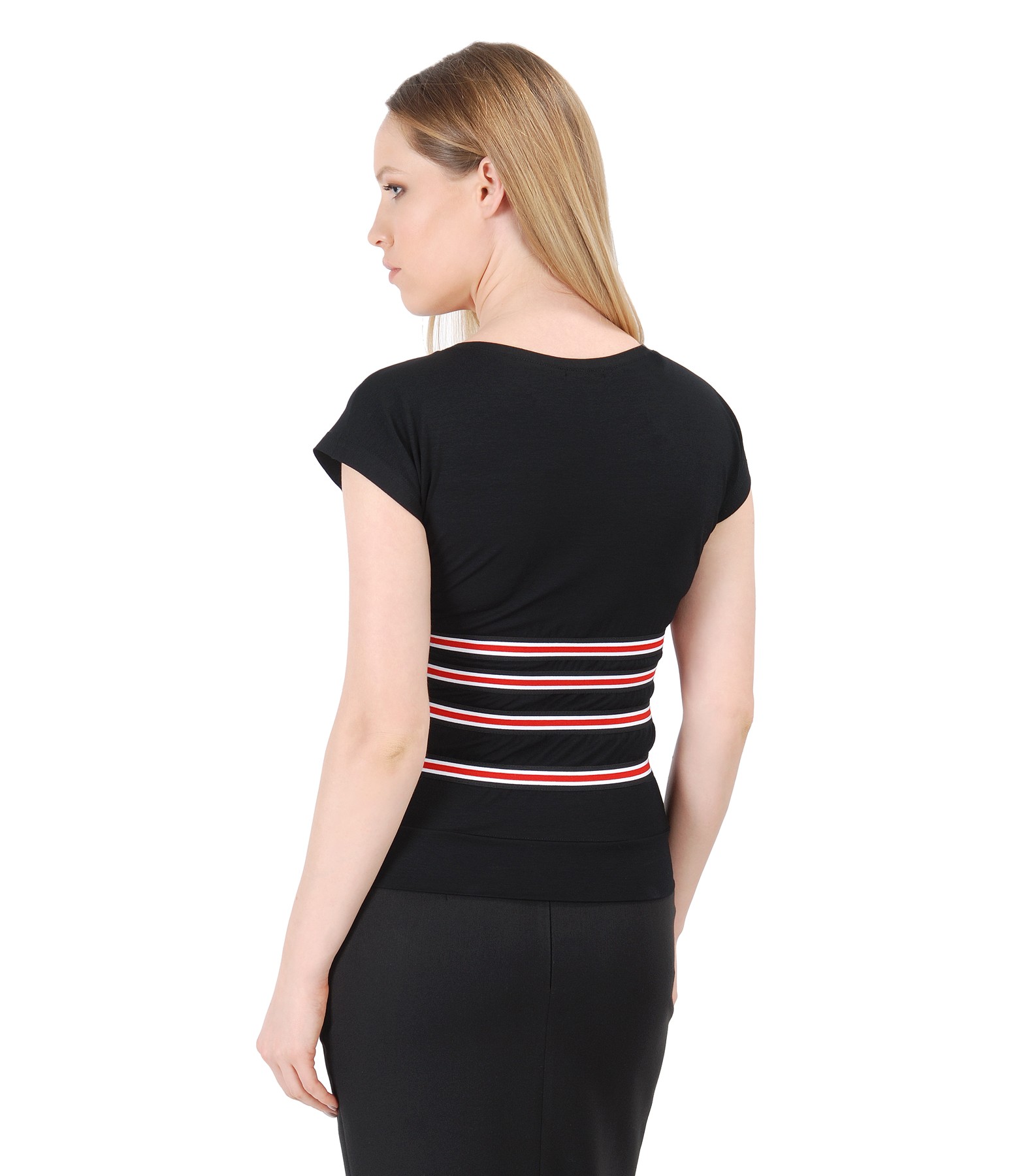 Tricou din jerse uni si elastic in talie (Negru), marimea